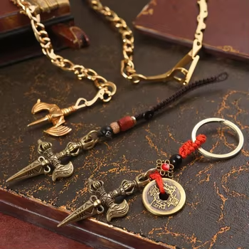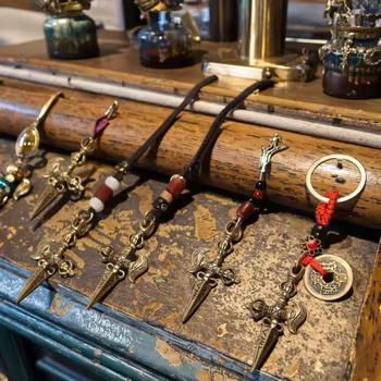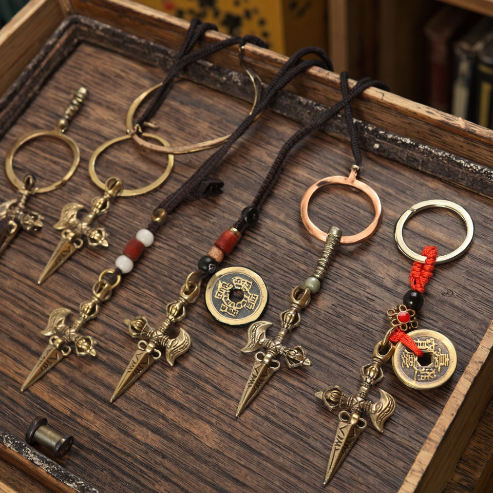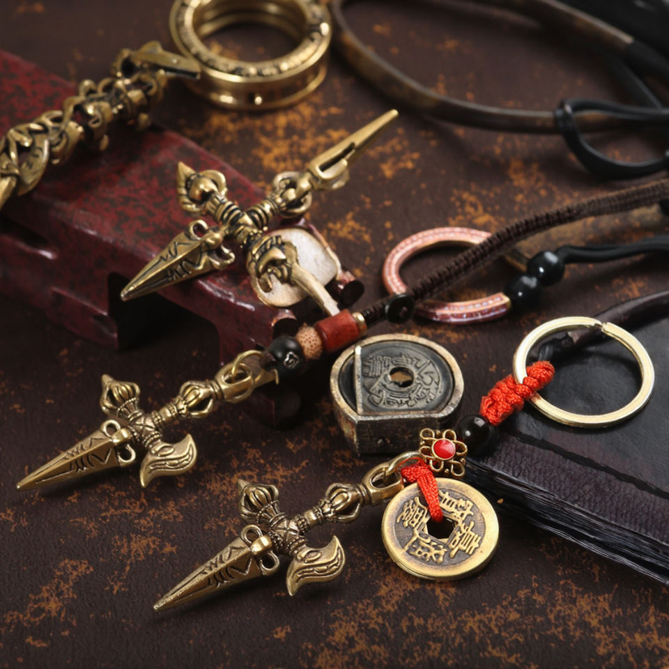 พวงกุญแจทางศาสนา Tantric Crescent axe Vajra pestle ห้อยระย้าแนววินเทจทำจากทองแดงแท้พังก์