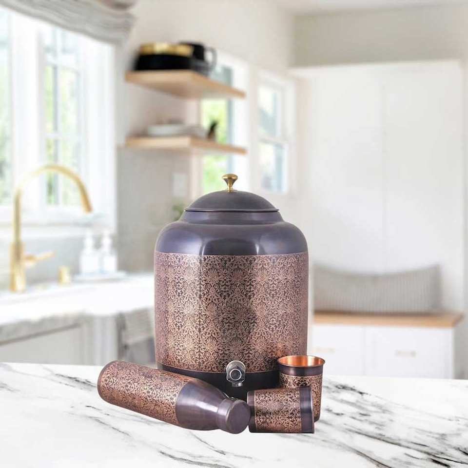 เครื่องจ่ายน้ำทำจากทองแดงบริสุทธิ์งานทำมือในอินเดียผลิตภัณฑ์ส่งออกสำหรับดื่มในบ้าน