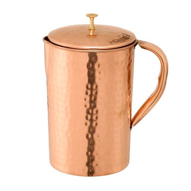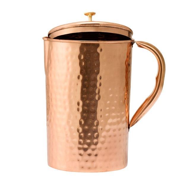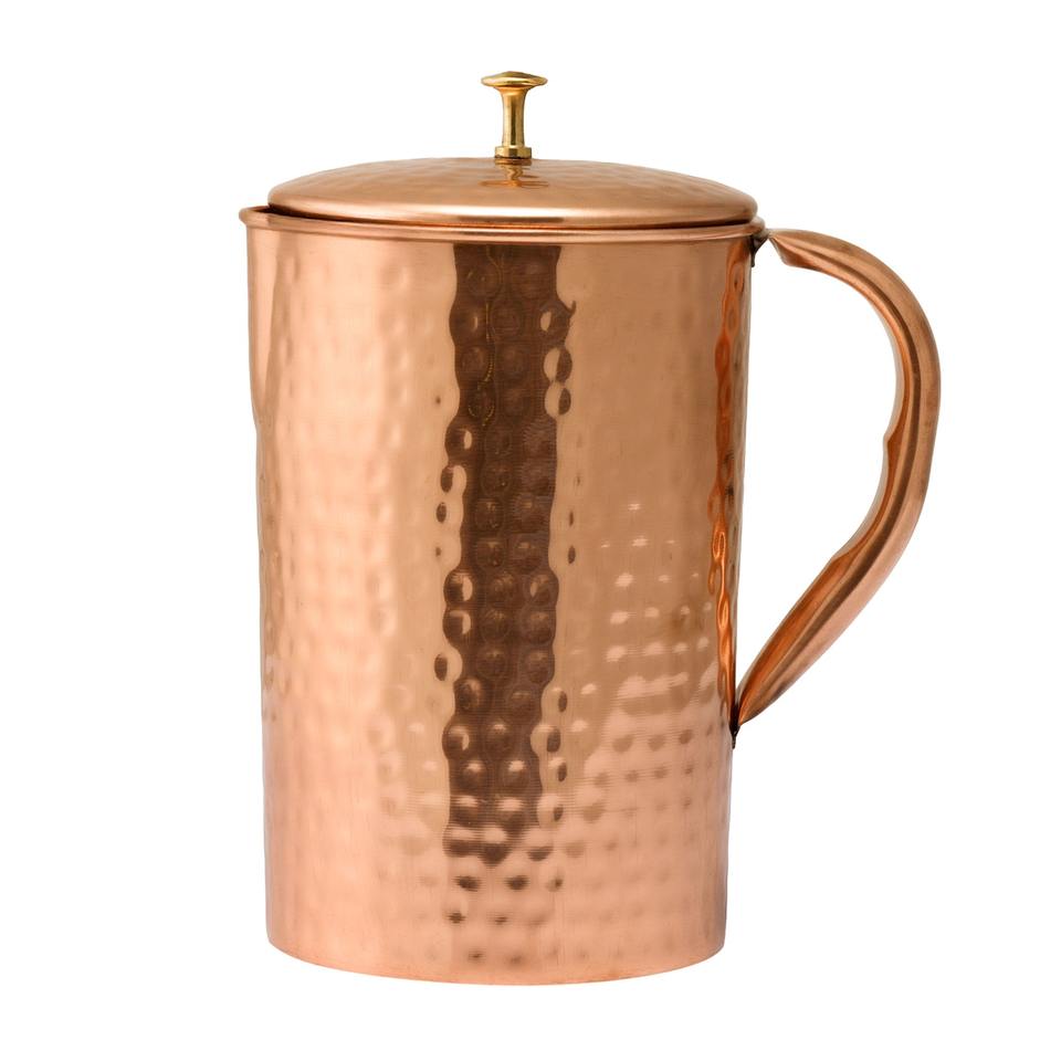 เหยือกน้ำทองแดงแท้ | 2 ลิตร | ปราศจากสาร BPA | เหยือกทองแดงตีลายพร้อมฝาปิด | น้ำดื่มและการเก็บน้ำ