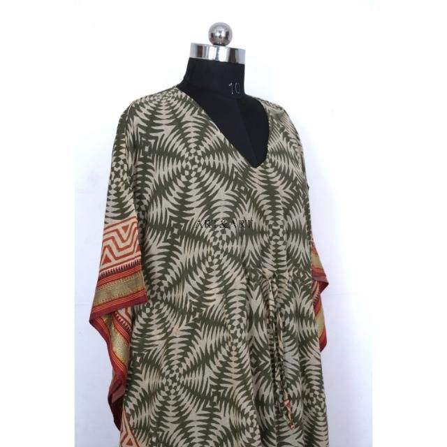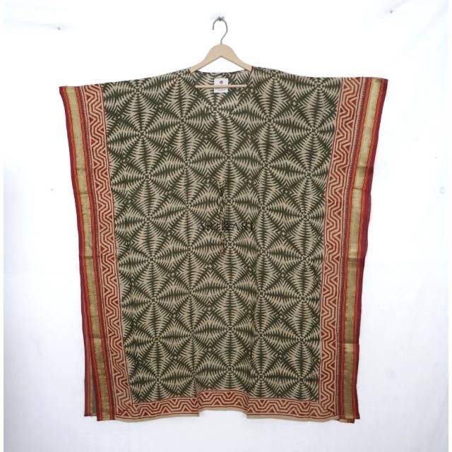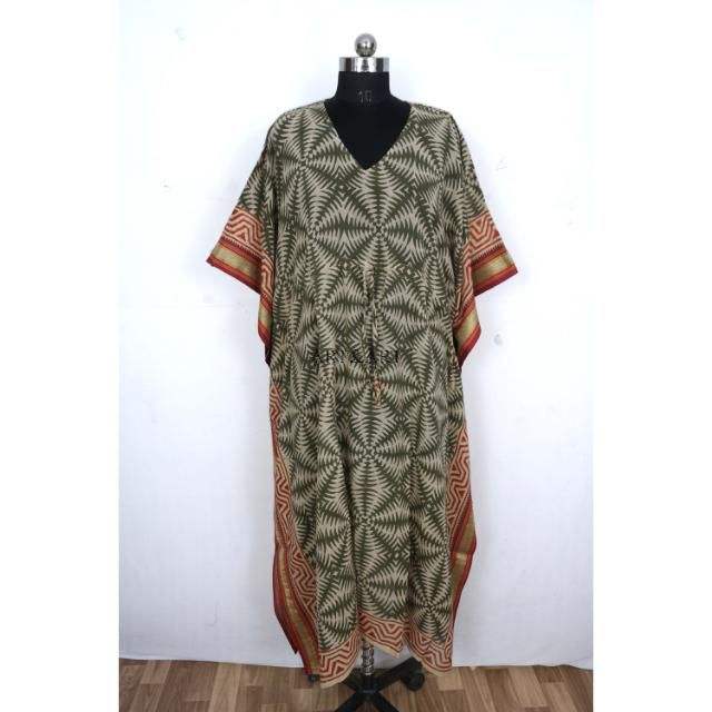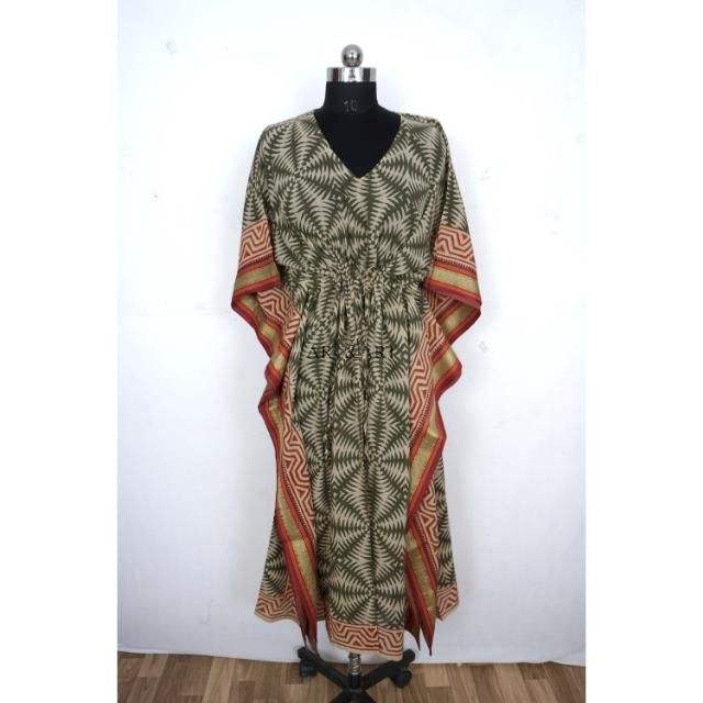 ชุดเดรสสั้นผ้าฝ้ายแท้พิมพ์ลาย Bagru แบบอินเดีย พิมพ์ลายด้วยมือ เหมาะสำหรับฤดูร้อน ลายดอกไม้ ชุดคลุมชายหาด/ชุดนอนคนท้องแสนสบาย แบบยาว