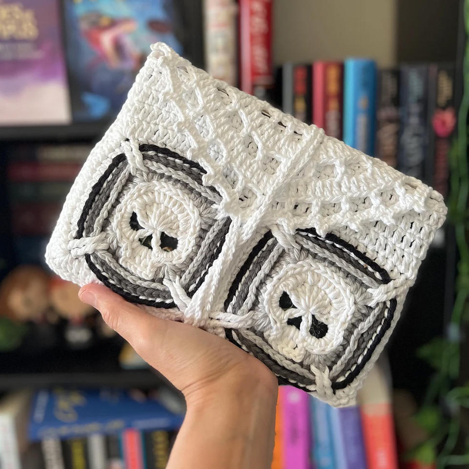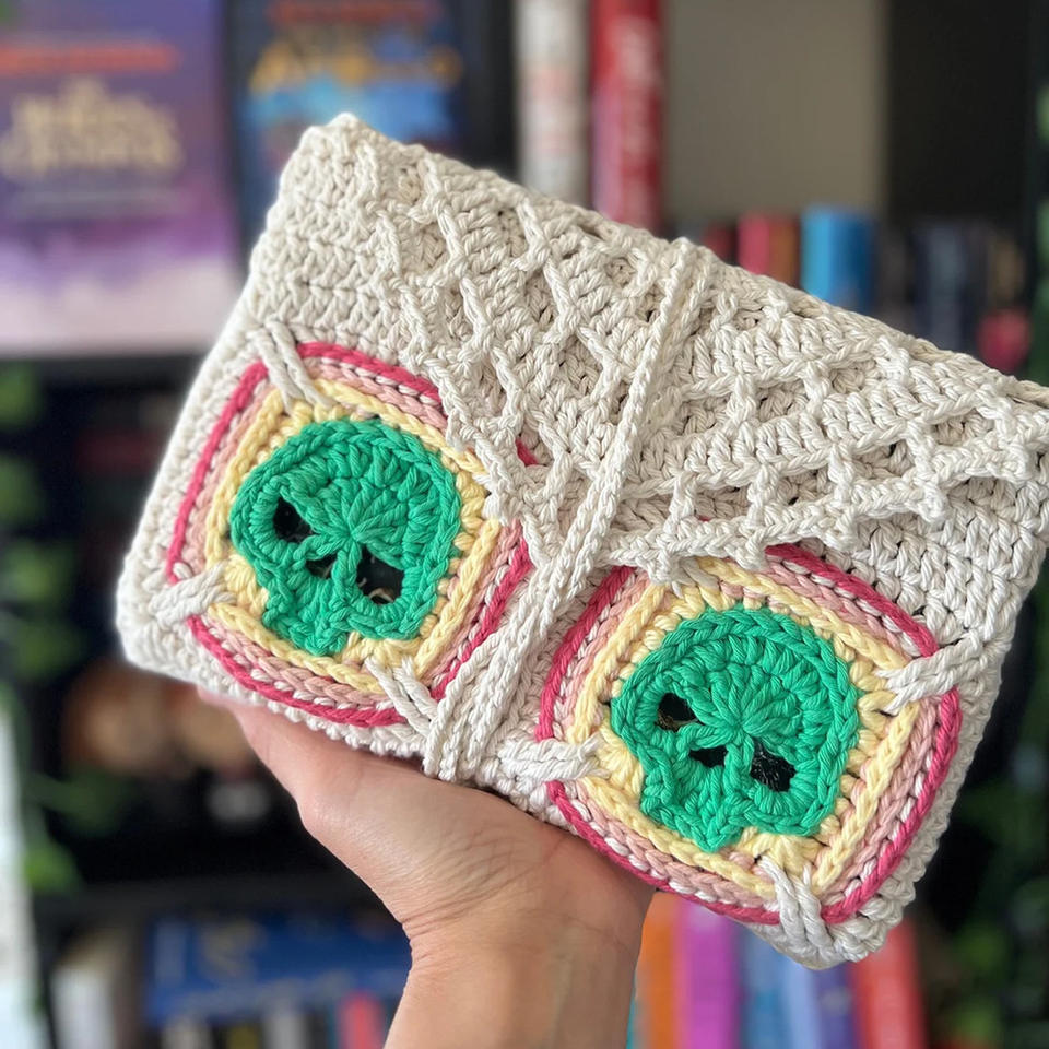 ปกหนังสือลายหัวกะโหลกผ้าฝ้ายแท้แบบกอธิคทำด้วยมือสไตล์โบฮีเมียนของผู้หญิงกระเป๋าคลัทช์แบบลำลองมีสี่สีแบบเปิด
