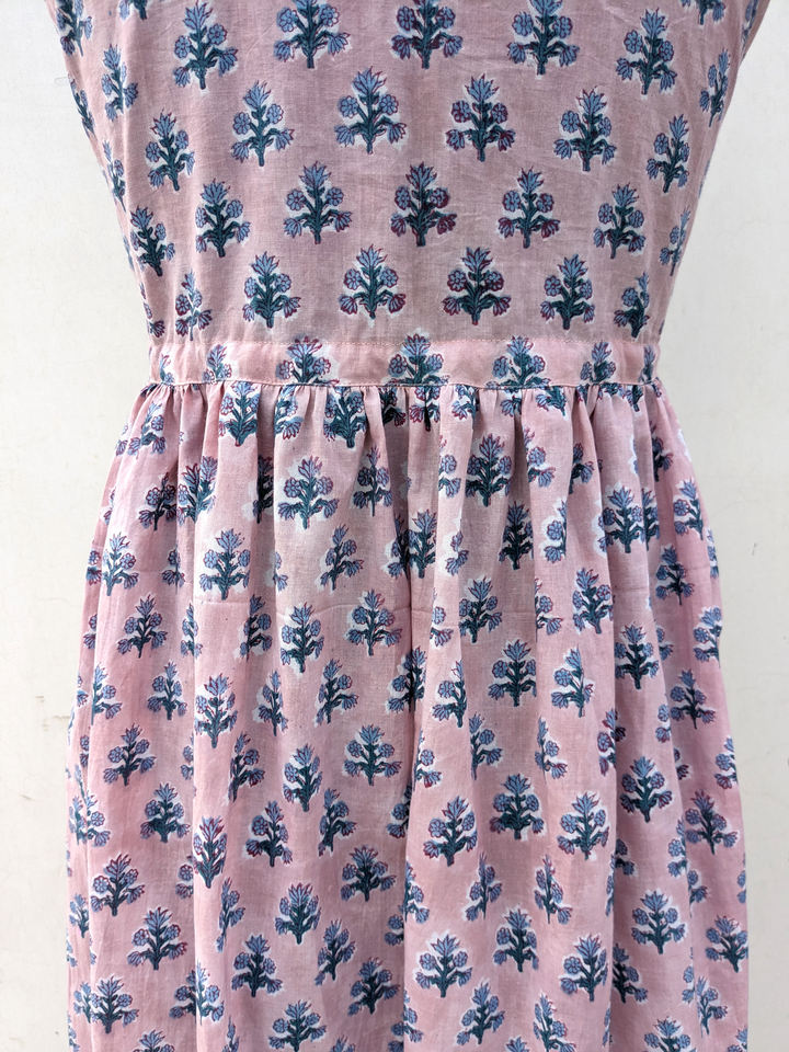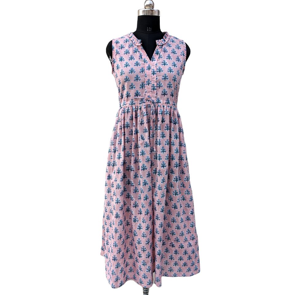 ชุดเดรสยาวผ้าฝ้ายแท้พิมพ์ลายแบบบล็อกด้วยมือสำหรับฤดูร้อนเดรสยาวแบบอินเดียชุดเดรสแขนกุดสไตล์โบฮีเมียนธรรมชาติสไตล์โบฮีเมียนชุดชายหาดออกแบบได้ตามต้องการ
