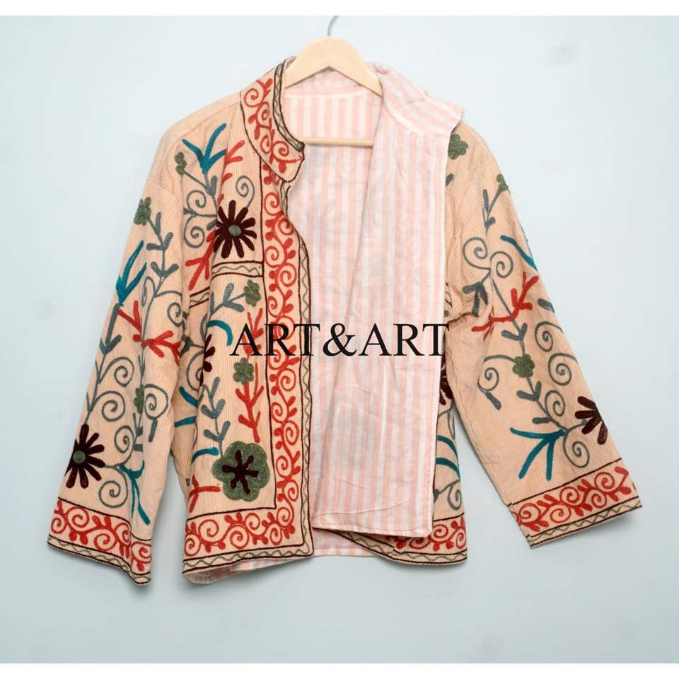เสื้อแจ็คเก็ตผ้าฝ้ายปักลายสำหรับผู้หญิง ฤดูหนาว ทำมือ ฟรีไซส์ เสื้อแจ็คเก็ตผู้หญิง งานปักมือ