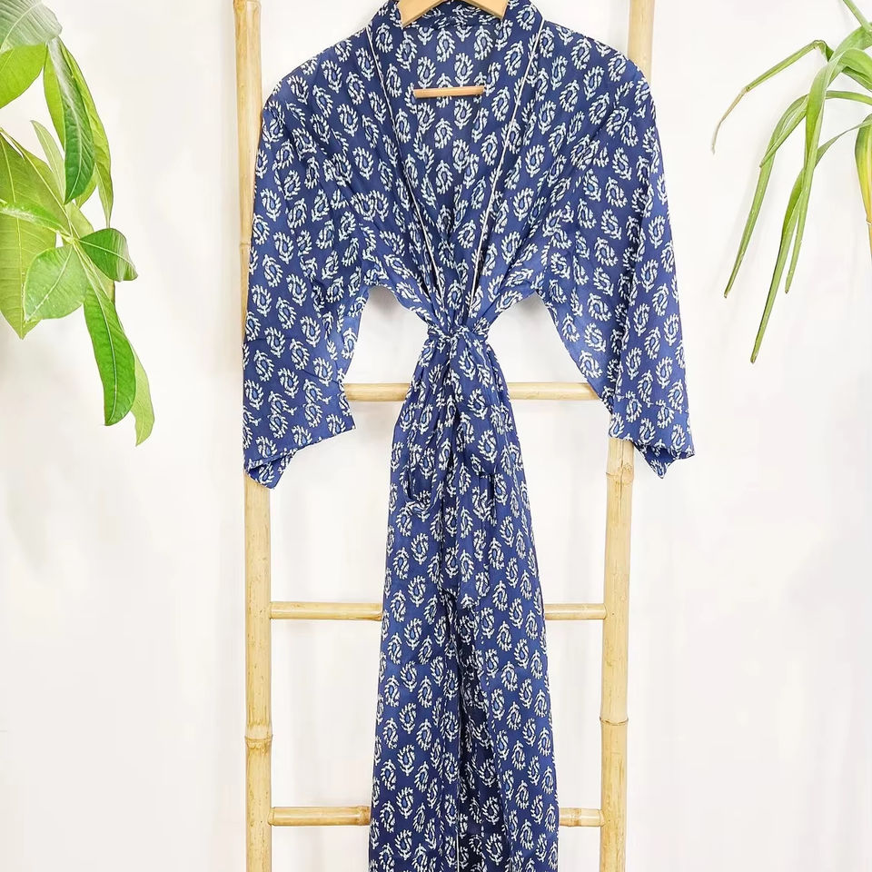 ชุดคลุมบ้านผ้าฝ้ายแท้พิมพ์ลายชุดกิโมโนสำหรับฤดูร้อนชุดคลุมชายหาด