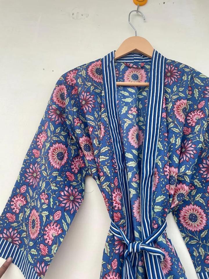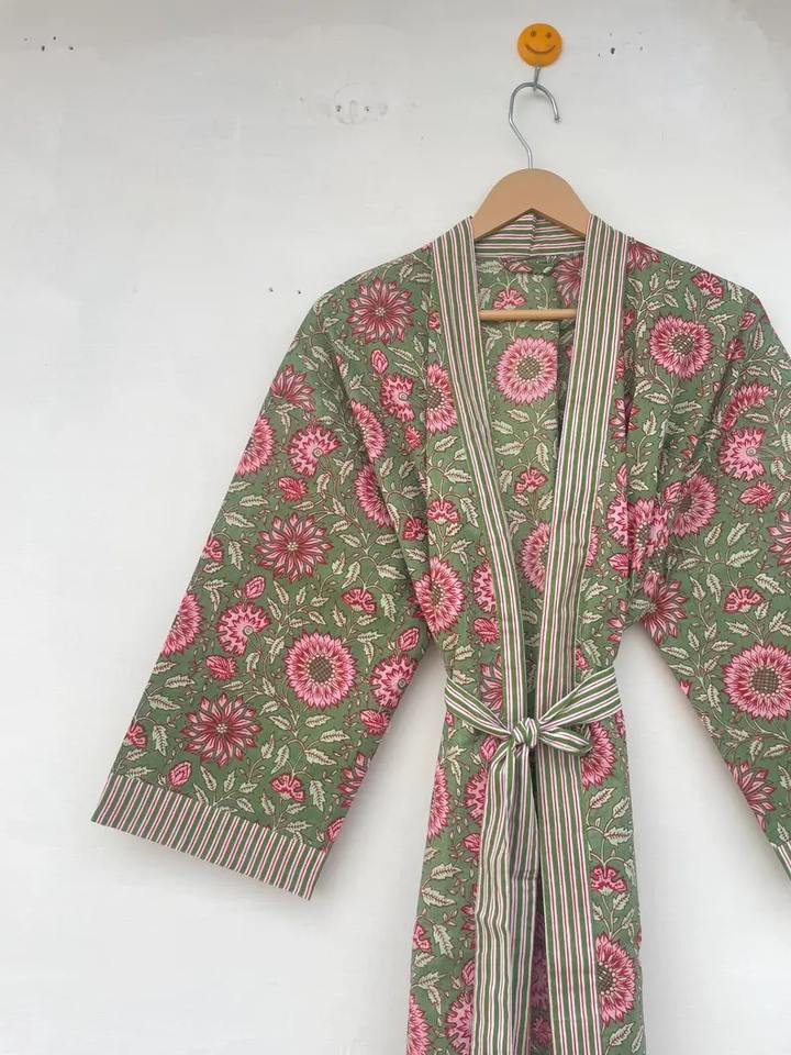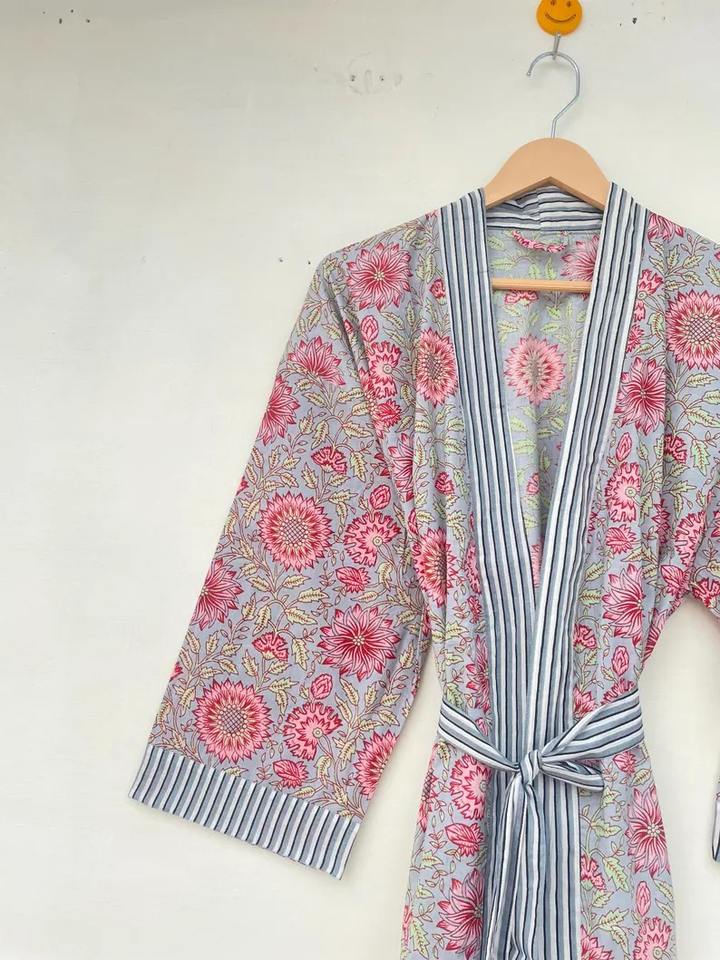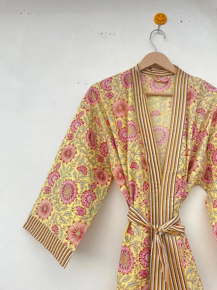 ชุดคลุมบ้านพิมพ์ลายดอกไม้ทำจากผ้าฝ้ายแท้สำหรับฤดูร้อนชุดกิโมโนชายหาดชุดเทศกาลตะวันออกชุดคลุมอาบน้ำพิมพ์ลายกิโมโนของขวัญ