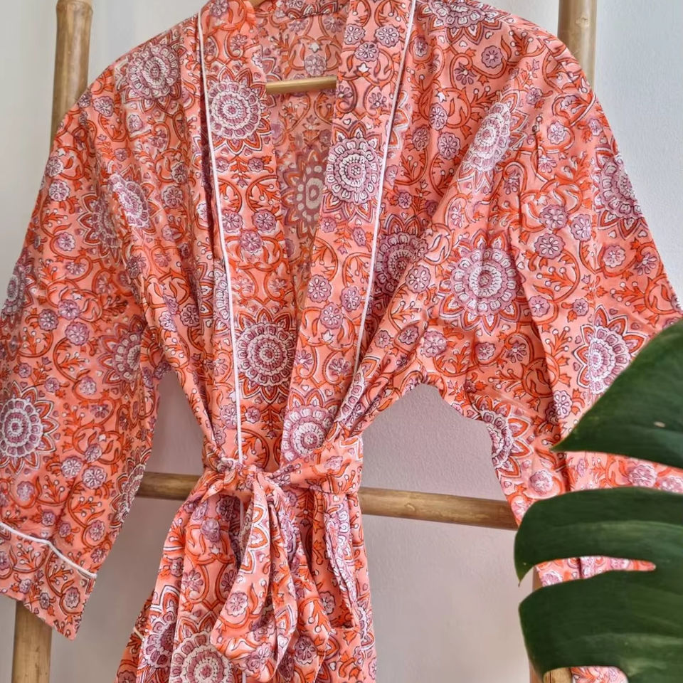 ชุดคลุมสำหรับใส่ในบ้านพิมพ์ลายสไตล์อินเดียชุดกิโมโนสำหรับใส่ไปทะเลลายดอกไม้ใส่สบาย