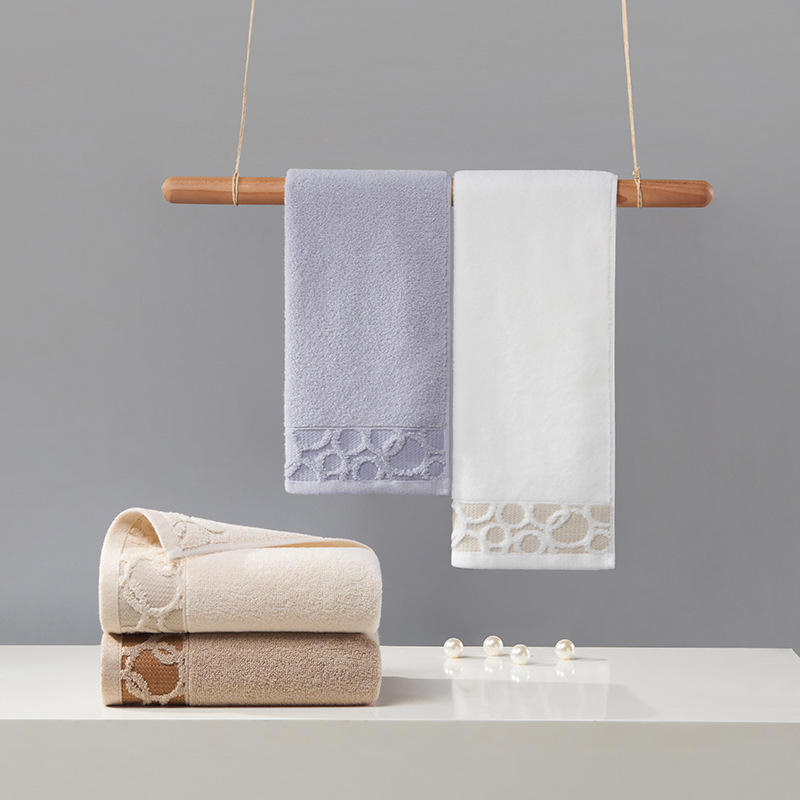 Pure Cotton Jacquard Bath Towel 34x74Cm Geometric Pattern Fluffy Absorbent Home Use Rectangle Towel For Adults Men Women