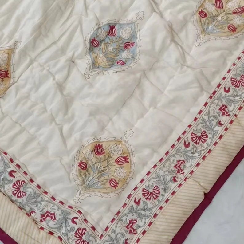 Jaipuri ผ้านวมผ้าฝ้ายแท้พิมพ์ลายบล็อกทำจากผ้าฝ้ายออร์แกนิกสินค้าอินเดียนุ่มและสบาย
