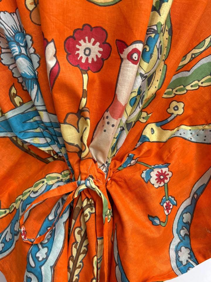 เดรสผ้าคอตตอนคาฟตันลายนกและดอกไม้ผ้าฝ้ายอินเดียชุดเดรสใส่ในวันหยุดแบบโบฮีเมียนชุดใส่ชายหาดแบบคลุม