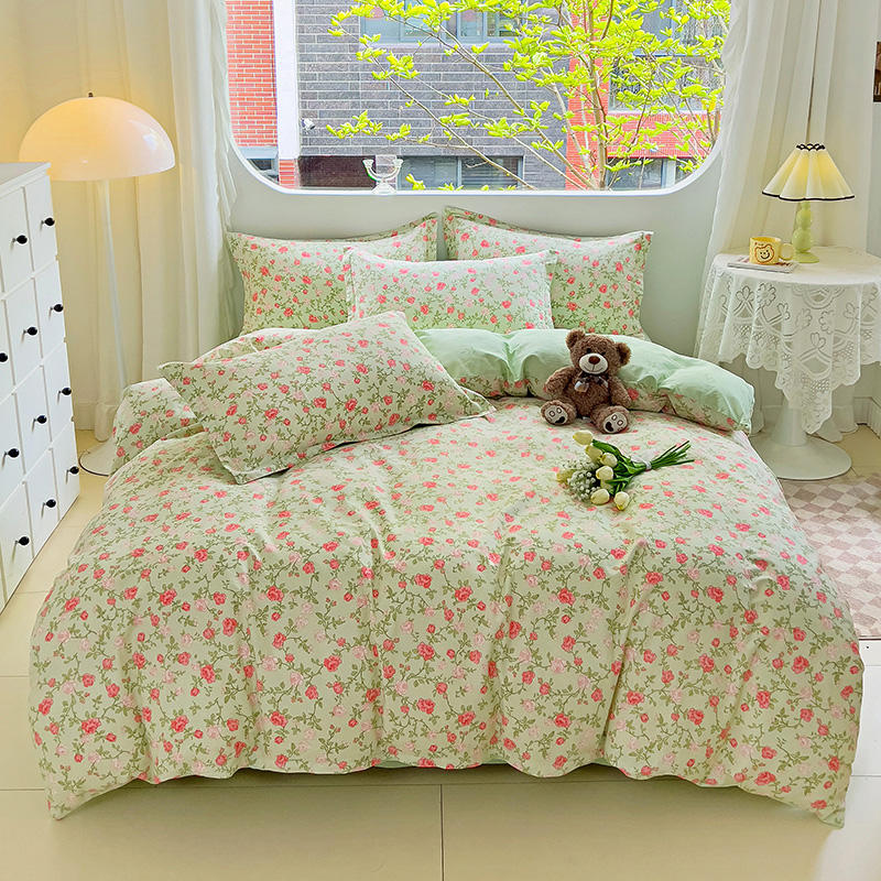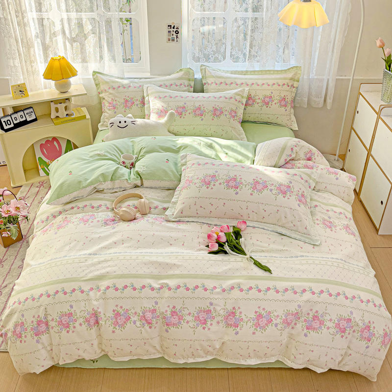 ชุดผ้าฝ้ายแท้เนื้อบางเบาพิมพ์ลายสดชื่น ชุดสี่ชิ้น