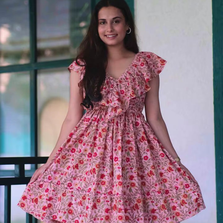เดรสแม็กซี่คอตตอนแท้พิมพ์ลาย Bagru แบบอินเดียชุดชายหาดสไตล์โบโฮสวมใส่สบายสำหรับฤดูร้อนฤดูร้อน