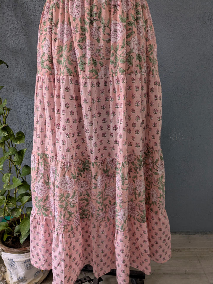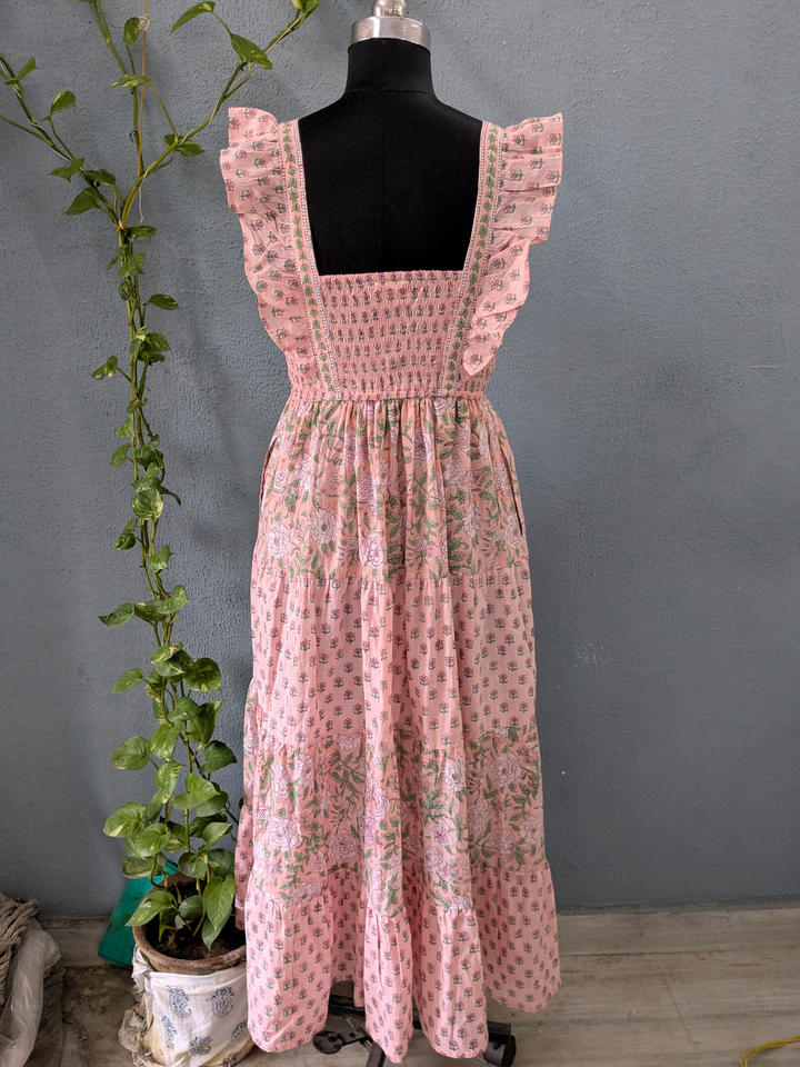 เดรสแม็กซี่ผ้าฝ้ายแท้สไตล์โบฮีเมียนสำหรับผู้หญิงทำด้วยมือแขนกุดเป็นมิตรกับสิ่งแวดล้อมและซักได้สำหรับฤดูร้อนอินเดีย