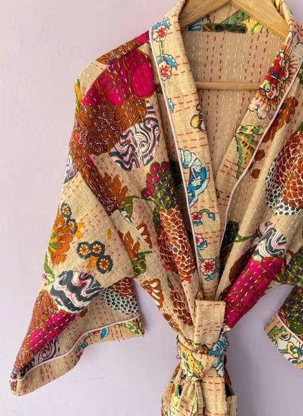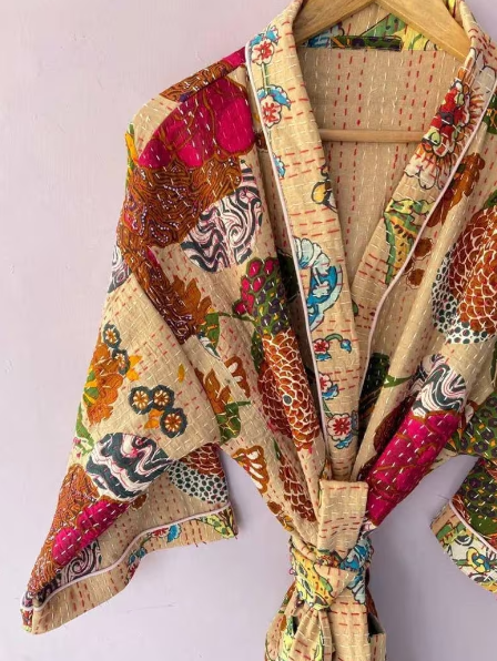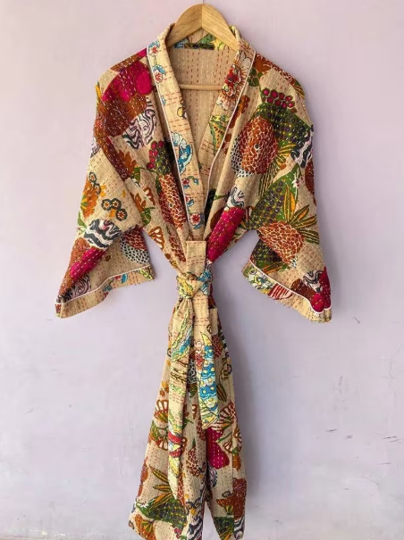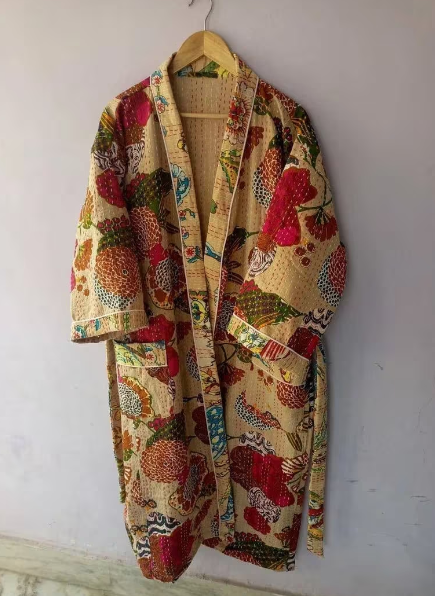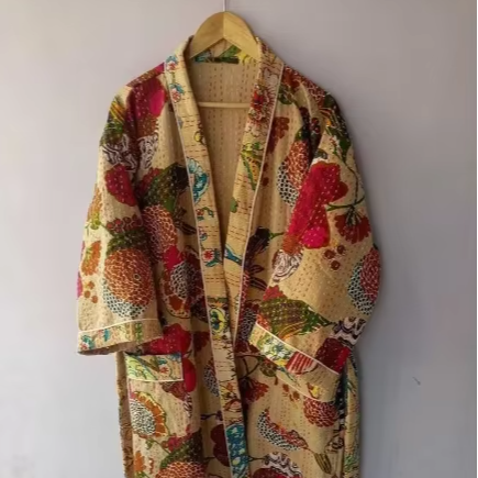 เสื้อคลุมกิโมโนผ้าฝ้ายแท้พร้อมเข็มขัดผูกสำหรับผู้หญิงผ้าชั้นที่สวมใส่สบายและระบายอากาศได้ดีสำหรับการพักผ่อนในสภาพอากาศหนาวเย็น