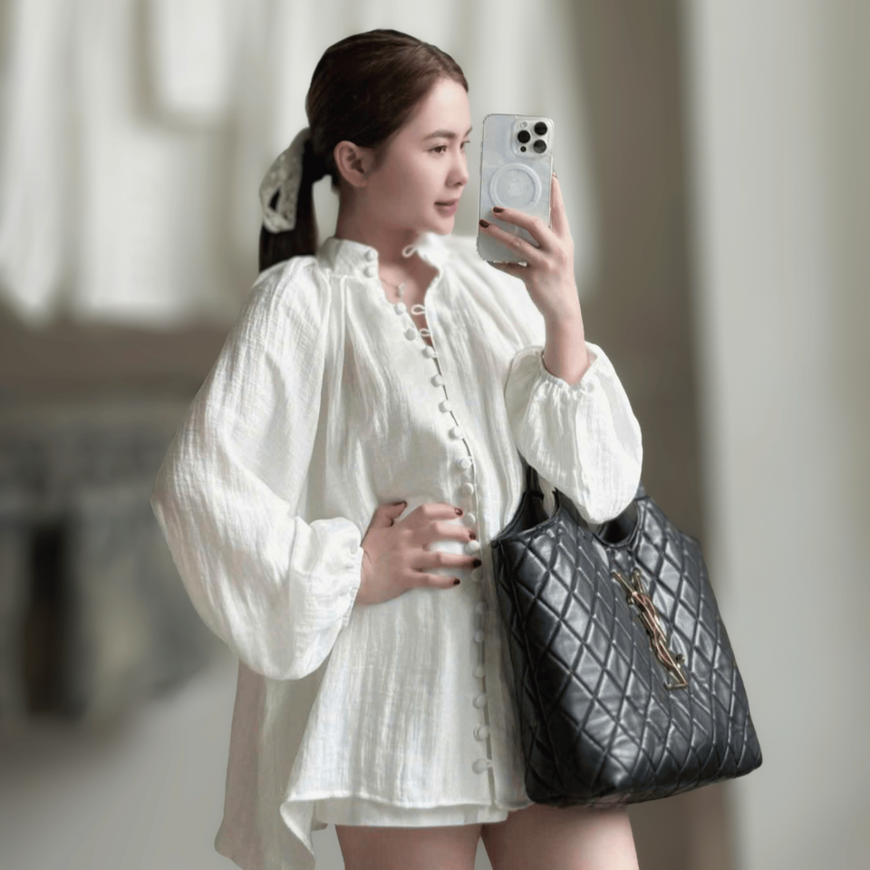 ชุดเซ็ตสองชิ้นผ้าฝ้ายแท้สไตล์ลำลอง ขายส่ง เสื้อแขนทรงโคมพร้อมโลโก้สั่งทำ กางเกงขาสั้นระบายสำหรับผู้หญิง ผลิตในเวียดนาม