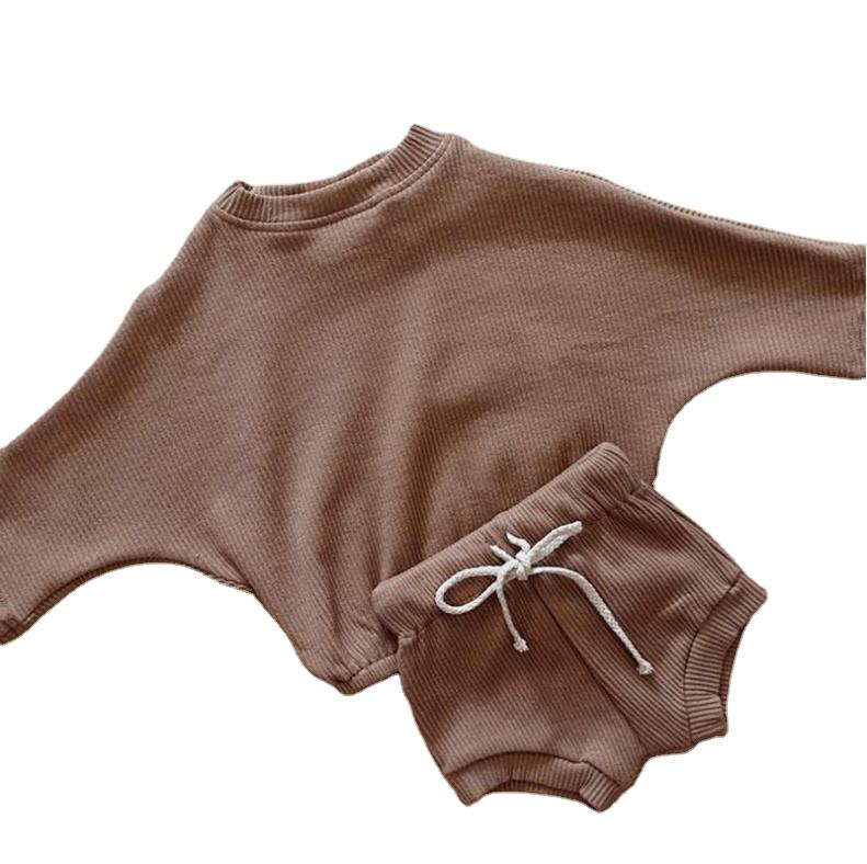 ชุดเสื้อผ้าเด็กแขนยาวผ้าฝ้ายแท้พร้อมกางเกงขาสั้น ชุดฤดูร้อนเนื้อผ้านุ่ม