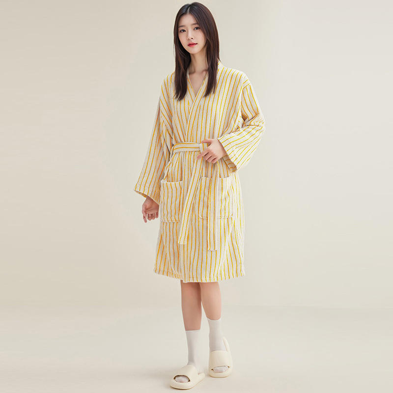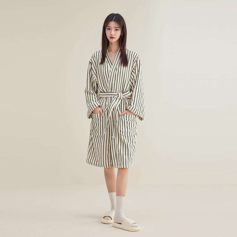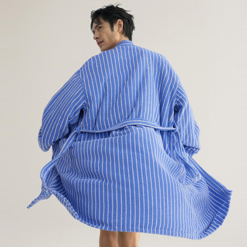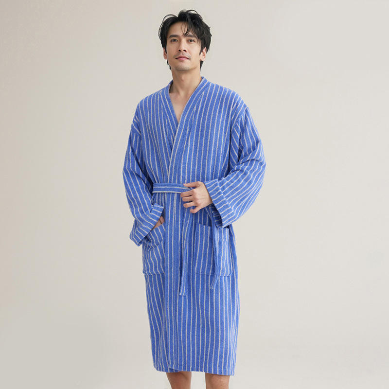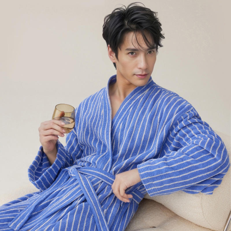 เสื้อคลุมอาบน้ำลายทางผ้าฝ้ายแท้สำหรับผู้ชายฤดูหนาวฤดูใบไม้ผลิฤดูใบไม้ร่วงสีฟ้าสีขาวสีดำสีเหลืองเสื้อคลุมอุ่นฤดูใบไม้ร่วงปี 2025