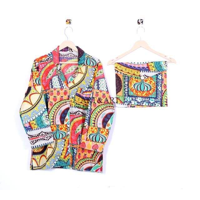ชุดนอนผ้าฝ้ายแท้สำหรับฤดูร้อน ชุดนอนผู้หญิงหลากสี ชุดสามชิ้น ลายดอกไม้ ทำมือ