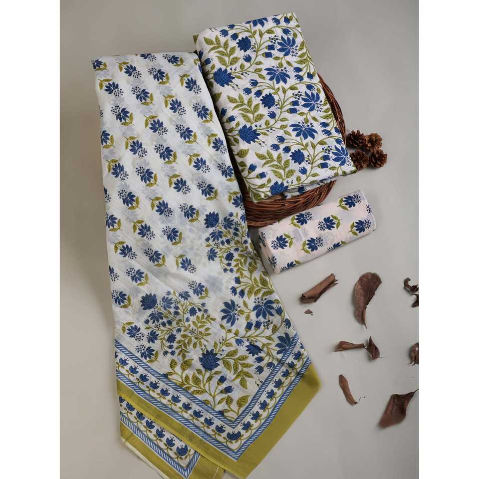ชุดผ้าฝ้ายบริสุทธิ์พิมพ์ลายสีขาวและเขียวขนาดฟรี