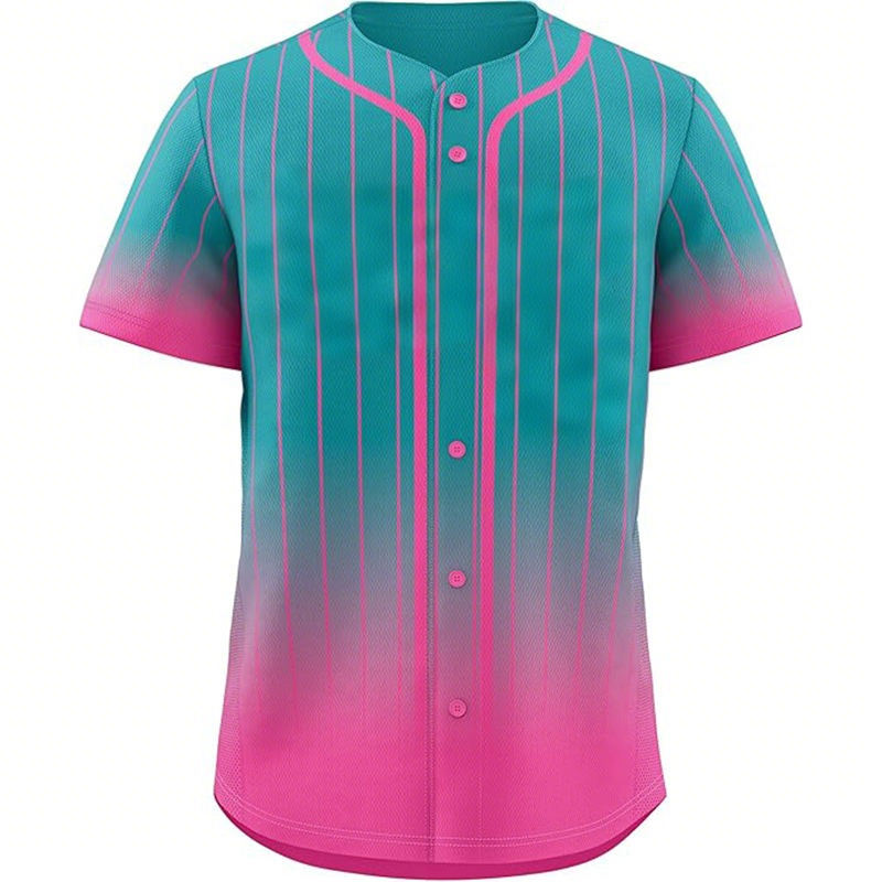 เสื้อเบสบอลแบบสั่งทำพิเศษ ลายสาดสี ปิดกระดุมทั้งตัว เสื้อซอฟต์บอลลายสาดสี ชุดกีฬาแบบสั่งทำส่วนตัว