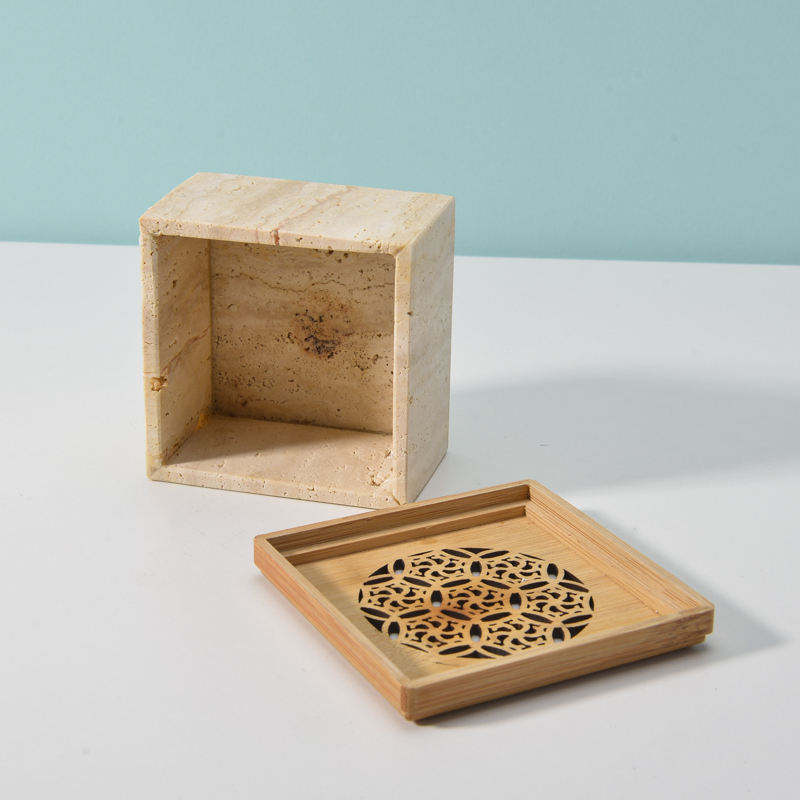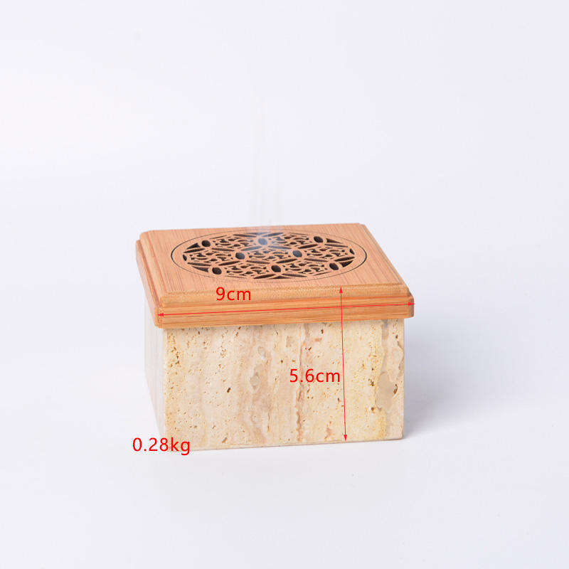 ที่ใส่บัคฮูร์ทรงสี่เหลี่ยมหินอ่อนแบบปรับแต่งได้ พร้อมฝาไม้ ใช้เป็นเตาเผากำยาน ที่ใส่เทียนทีไลท์ สำหรับตกแต่งบ้านและเป็นของขวัญ