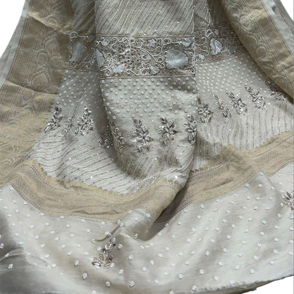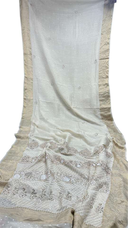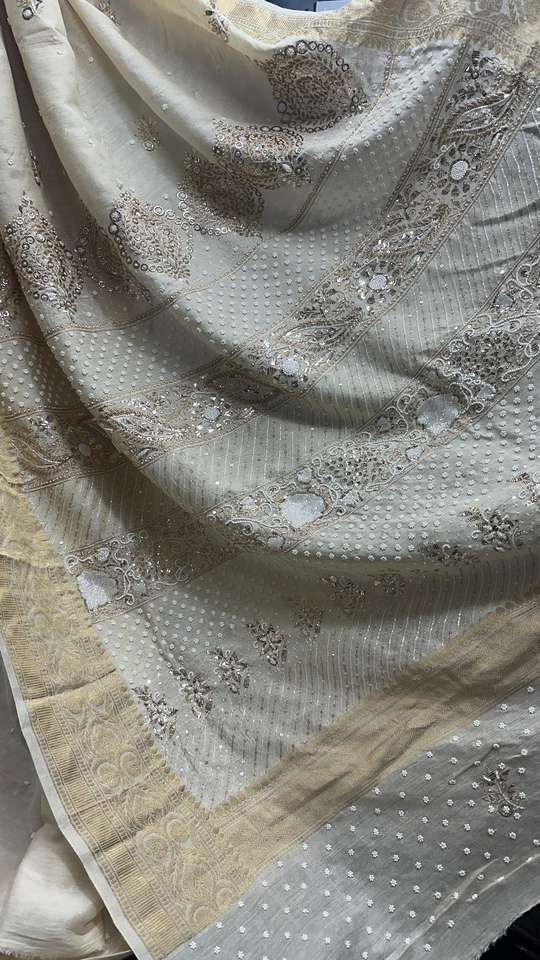 ผ้าไหมบริสุทธิ์ Desi moonga ส่าหรีแบบดั้งเดิมทำด้วยมือ mukesh katdana teeki เพิร์ล pitta สำหรับปาร์ตี้สวมใส่เสื้อผ้าอินเดียปากีสถาน