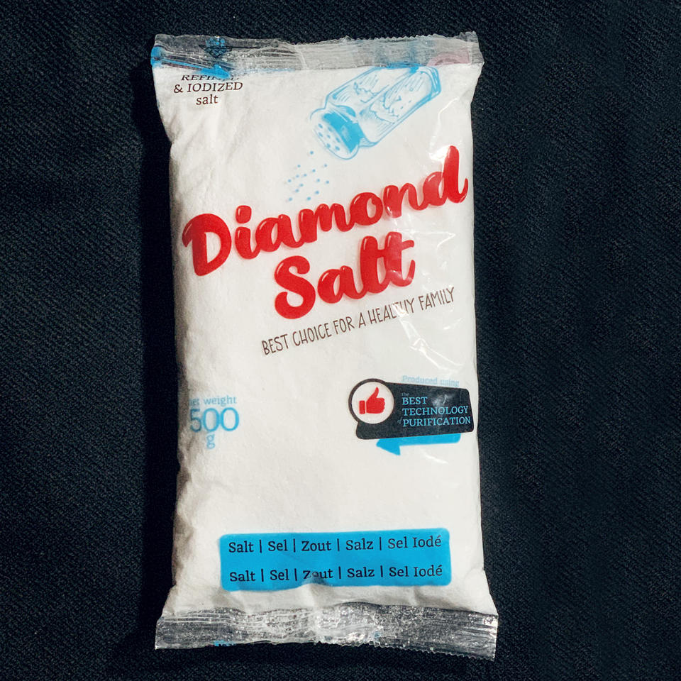 Pure Diamond Salt 500g Halal Kosher ISO Refined Iodized Laminated Private Label Long Shelf Life Table Salt Powder Bulk Bag