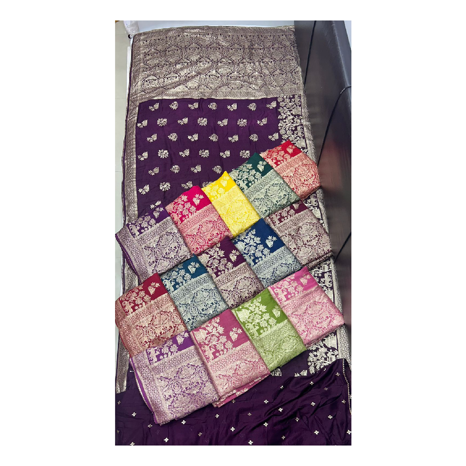ส่าหรีผ้าไหมโดลาแท้ที่มีการออกแบบขอบงานทำจากด้ายสีทองสวยงามแบบโบราณสำหรับโอกาสพิเศษ