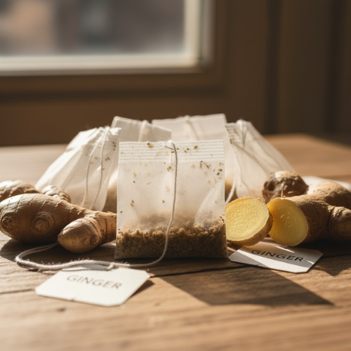 Pure Dried Ginger Slice Tea Bags with Golden Color and Deep Spicy Notes