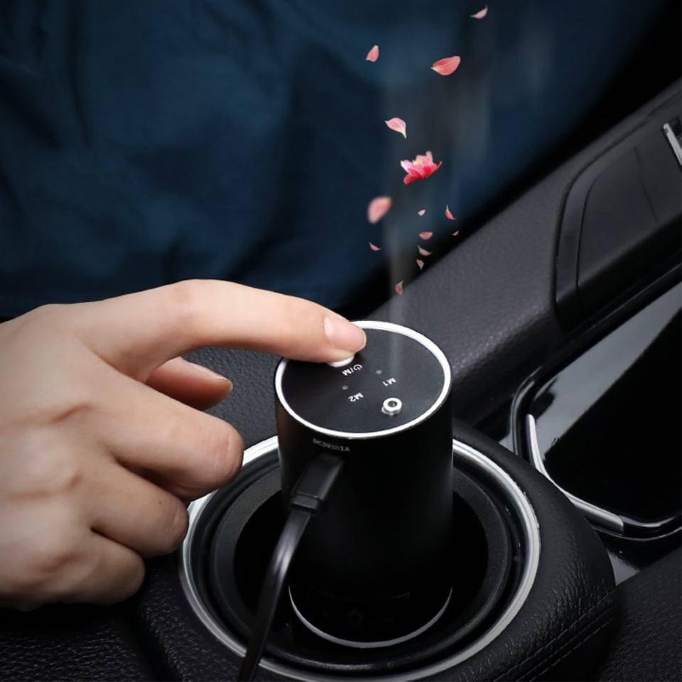 เครื่องพ่นอโรมาเธอราพีน้ำมันหอมระเหยบริสุทธิ์แบบอัตโนมัติ ติดตั้งในรถยนต์ ใช้ในบ้านและห้องน้ำ กำจัดกลิ่นไม่พึงประสงค์ แบบ USB