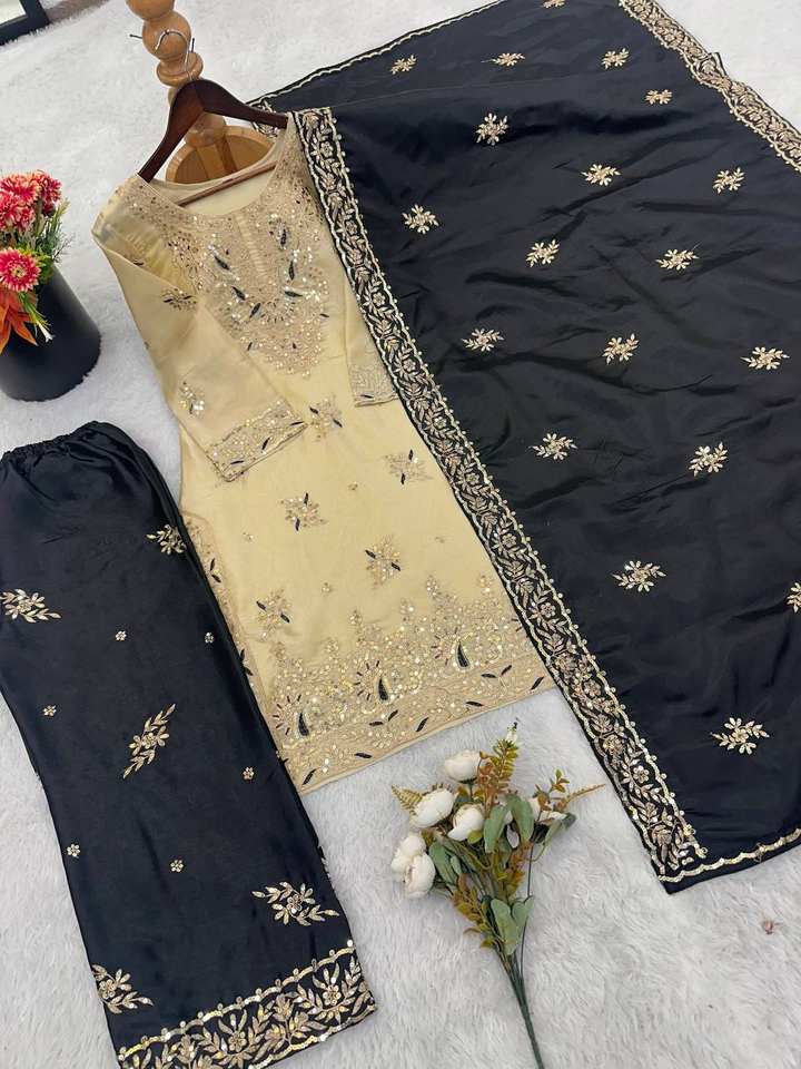 ชุดคุर्ติผ้าไหม GMY แท้ ปักลายหนักประดับเลื่อม พร้อมกางเกงพลาโซและผ้าคลุมไหล่