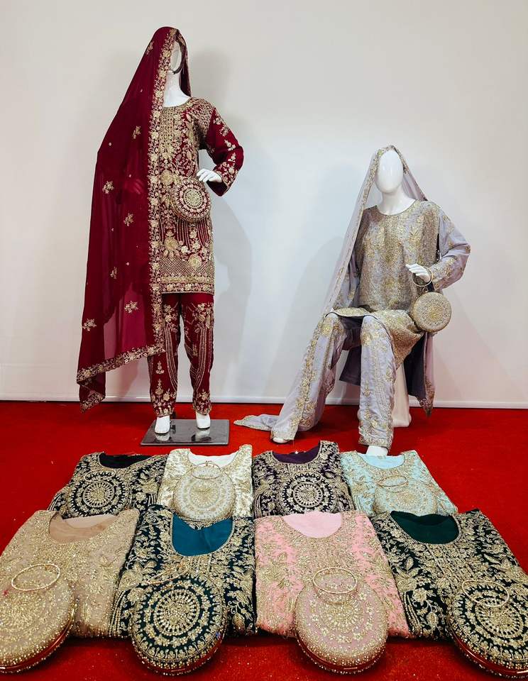 PURE georgette คอลเลกชัน5การออกแบบที่สวยงามพลอยเทียมเลื่อมเพชร jarkan หินทำงาน10สีหนัก dupatta สำหรับเด็กผู้หญิงฟรี