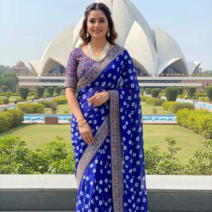 การบรรจุ:ผ้าซารี 1 ตัวพร้อมเสื้อที่ไม่ได้เย็บ
