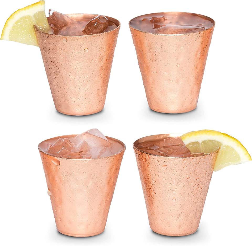 แก้วช็อตทองแดงแบบตีด้วยค้อนบริสุทธิ์สำหรับบาร์ในบ้านโรงแรมใช้ดื่ม