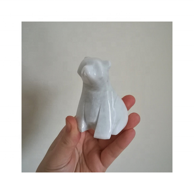 รูปปั้นหมีขั้วโลกหินอ่อนสีขาวแกะสลักด้วยมือวัสดุหิน