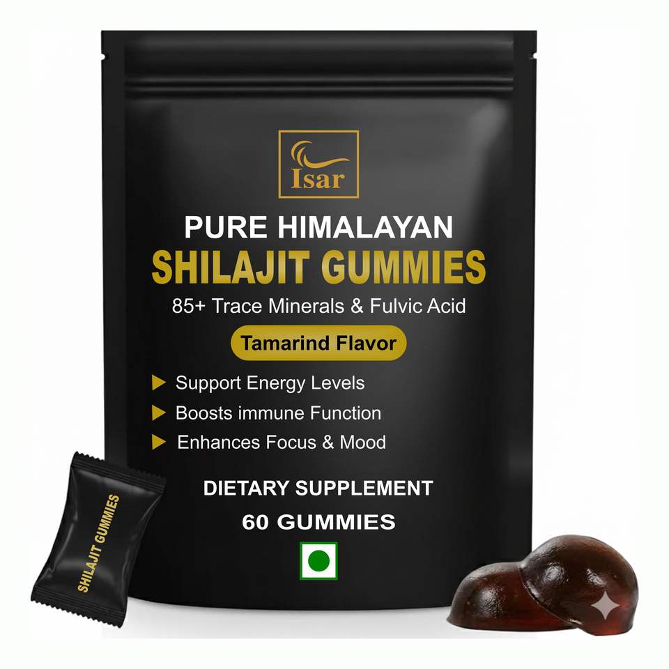 ชิลลาจิตแท้จากเทือกเขาหิมาลัยแบบกัมมี่ ปราศจากน้ำตาล 60 กัมมี่ในขวด สำหรับเพิ่มพลังงานและเสริมภูมิคุ้มกัน รสเสาวรสป่า