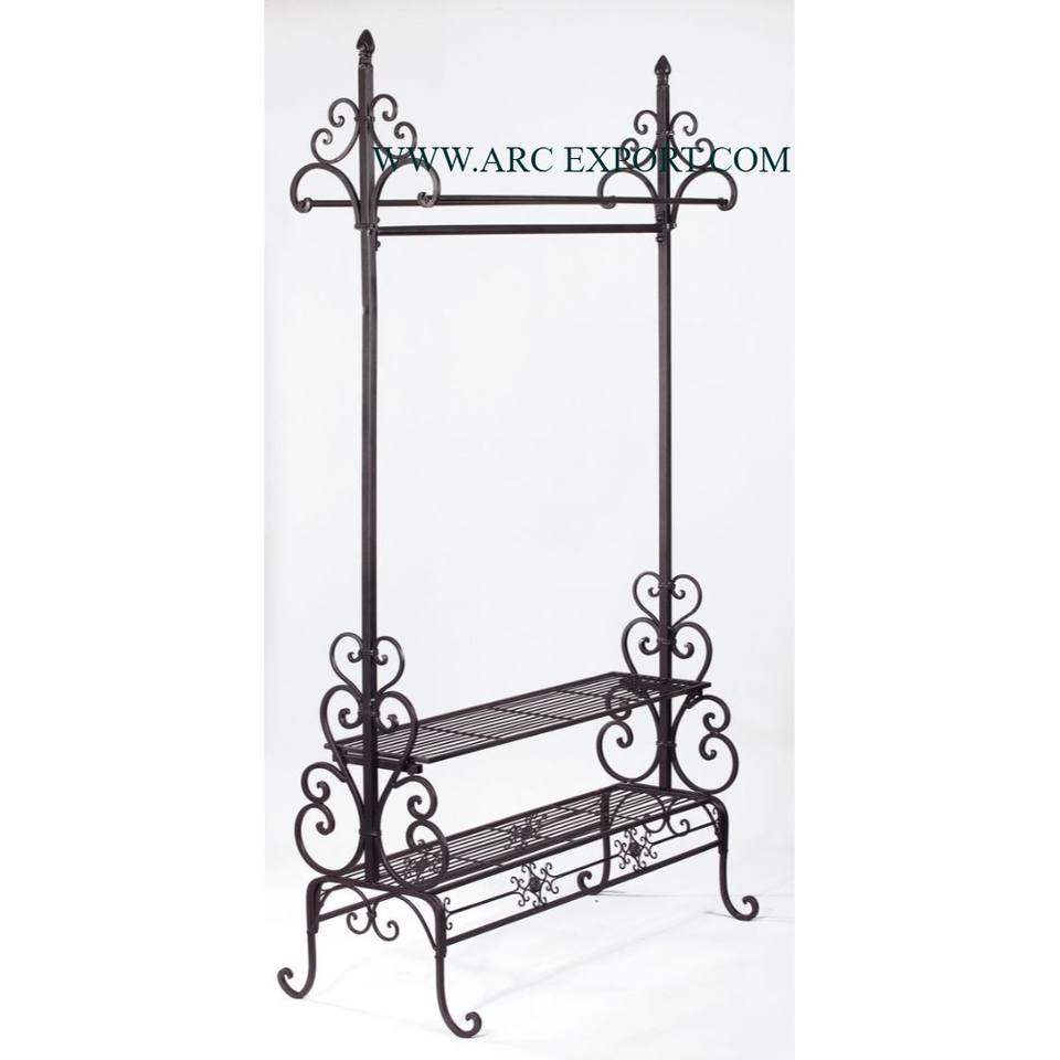 โครงเหล็กเคลือบผงสีดำล้วนพร้อมชั้นวางกระเป๋าเดินทางทำด้วยมือมีลวดลายสวยงาม