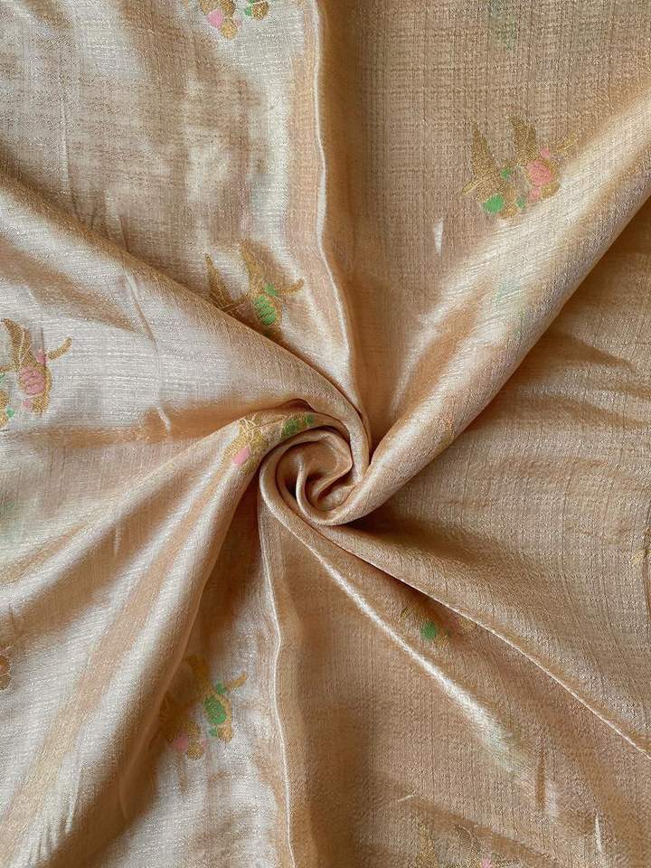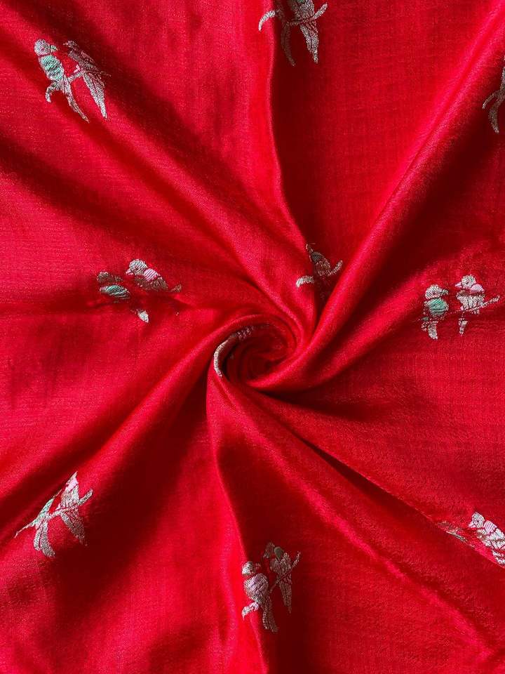 ผ้าส่าหรีผ้าไหมผสมปอกระเจาแท้สำหรับผู้หญิง พร้อมลายปักแบบ Parrot Weaving และขอบลูกไม้ Moti ผลิตในอินเดีย