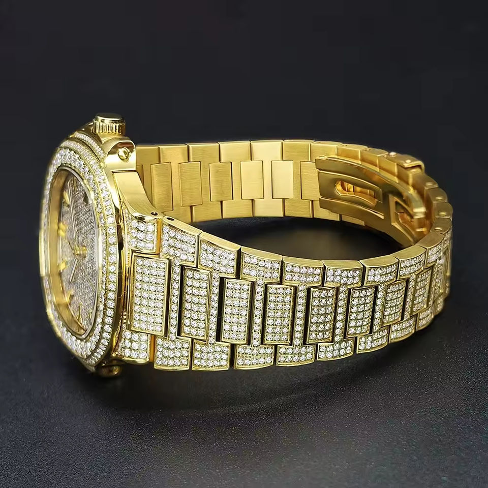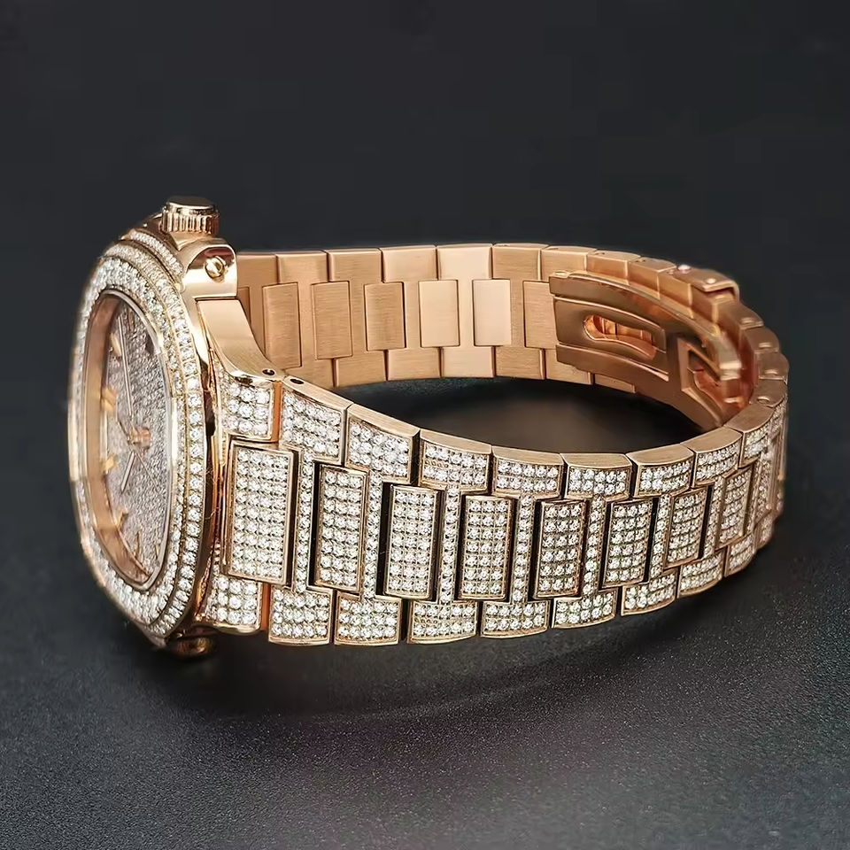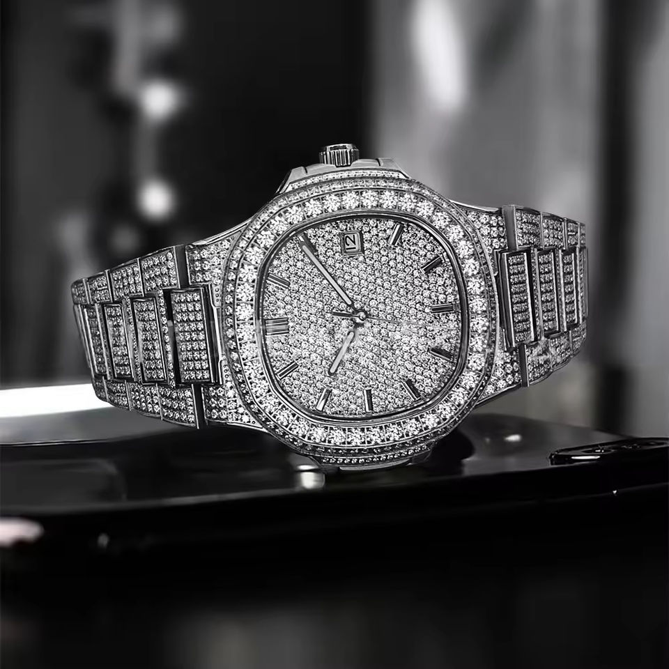 นาฬิกาข้อมือจักรกลหรูหราสำหรับทุกเพศ ดีไซน์เรียบหรู ประดับด้วยโมอิสซาไนต์ ตัวเรือนสแตนเลส สายกว้าง 20 มม. กันน้ำ