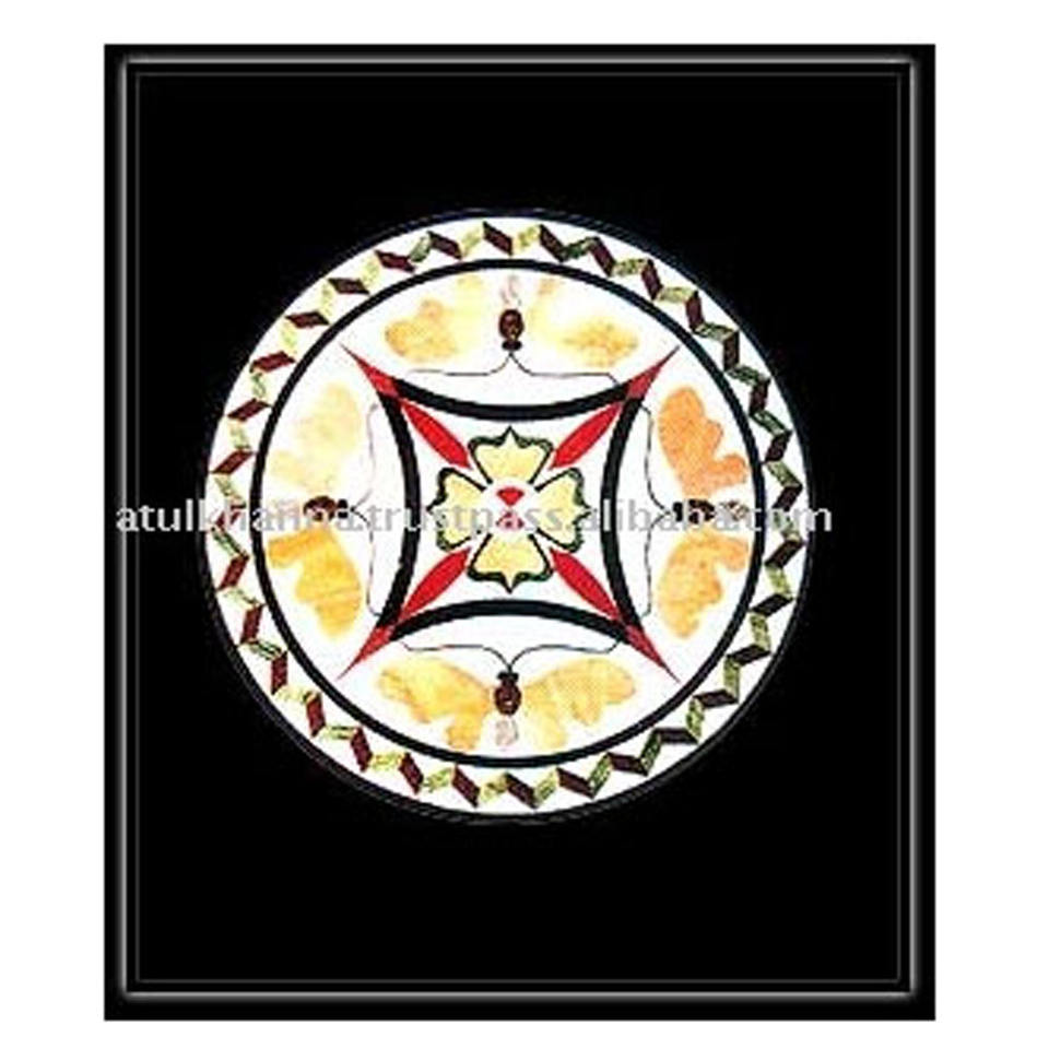 หินอ่อนบริสุทธิ์ฝังตารางท็อปส์โบราณที่ทำด้วยมือรอบโต๊ะท็อปส์