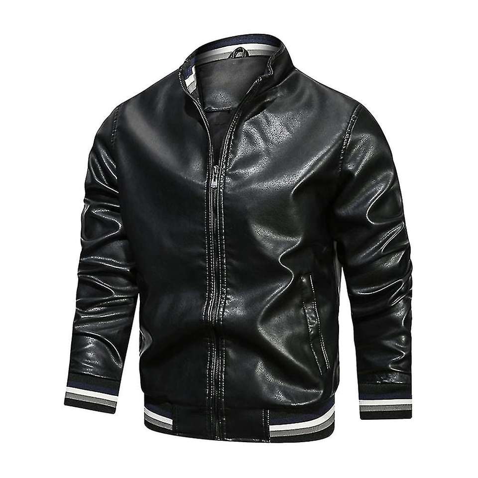 เสื้อสเวตเตอร์ถักสำหรับผู้ชาย, เสื้อแจ็คเก็ตหนัง PU ปกตั้งทรงสลิมฟิตพร้อมซิปและกระเป๋าให้ความอบอุ่นสำหรับนักธุรกิจสไตล์สุภาพบุรุษฤดูหนาว
