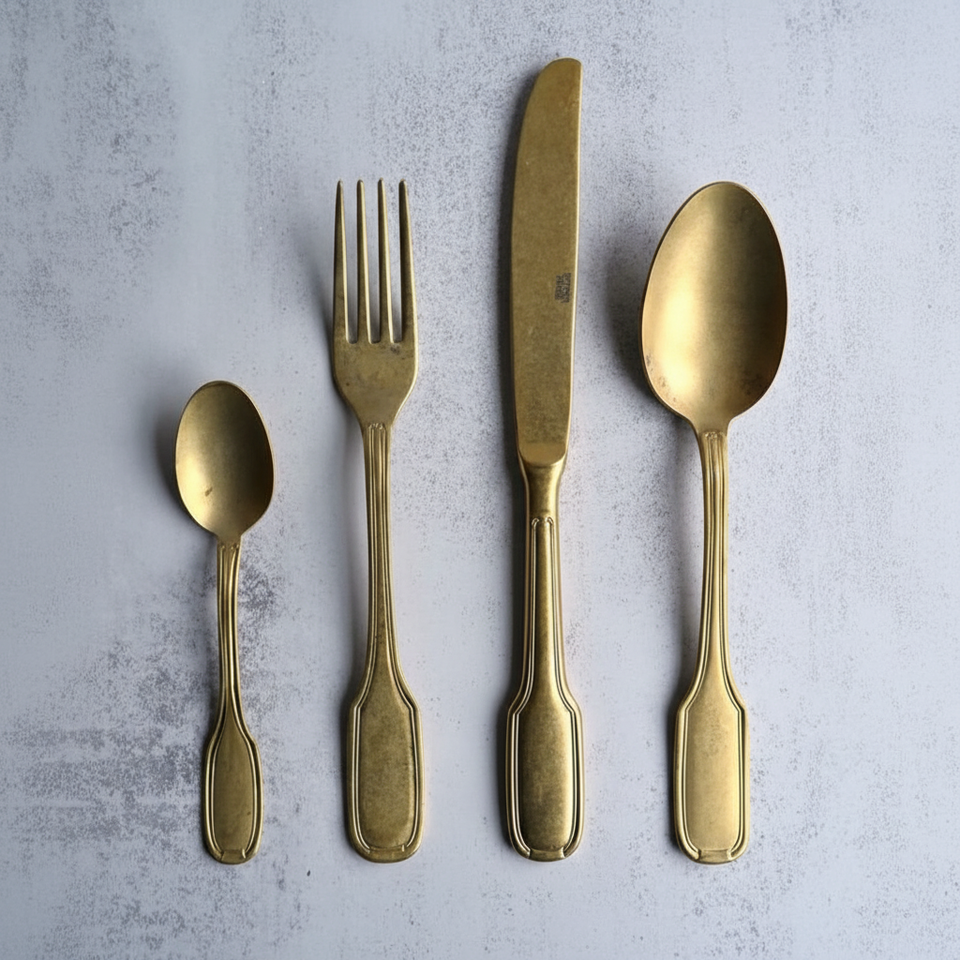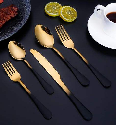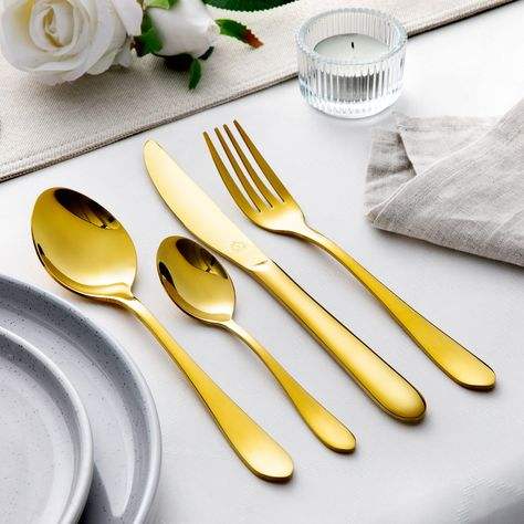 ชุดมีดดีไซน์เคลือบเงาสีทองล้วนแบบมินิมอลสำหรับร้านอาหารและโรงแรมหรูแบบแบนราคาถูกมาก
