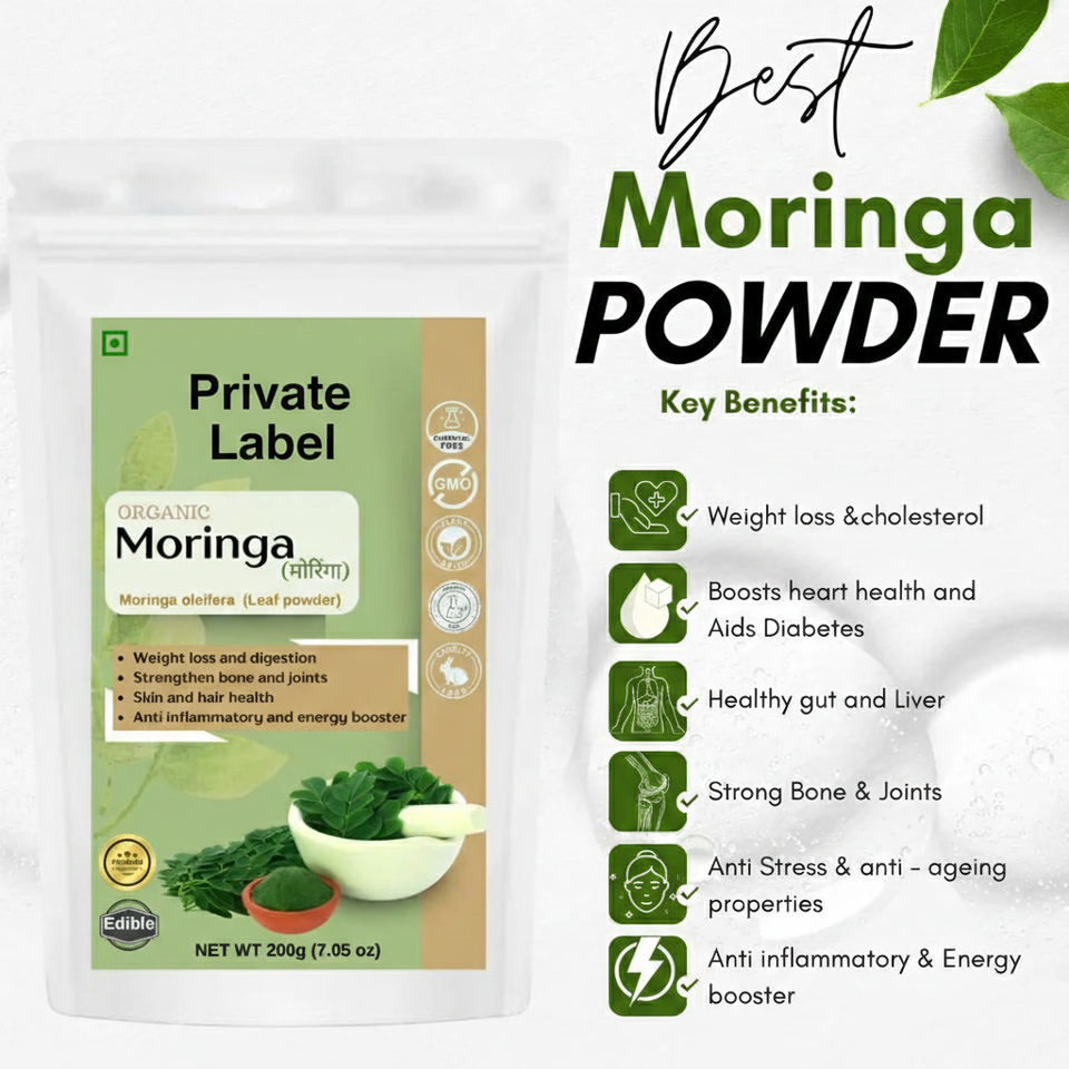 ผงใบมะรุมบริสุทธิ์ | ซูเปอร์ฟู้ดสีเขียวธรรมชาติ เกรดพรีเมียม | สินค้าแห้งขายส่งสำหรับส่งออกจากกูร์กาฏ์ อินเดีย
