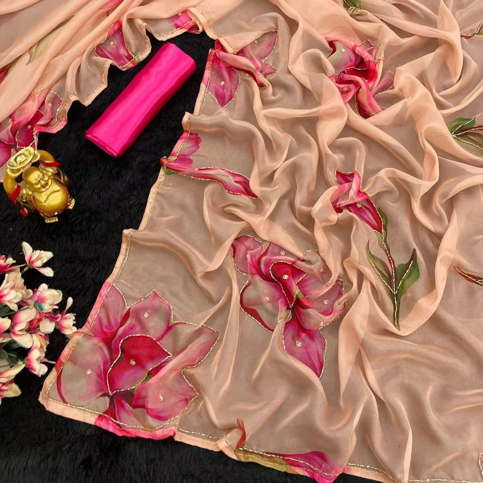ผ้าโปร่งบางแท้สำหรับปาร์ตี้งานด้วยมือสวยงามผ้าโปร่งพิมพ์ลายดิจิทัลสำหรับงานแต่งงานในโอกาสพิเศษ