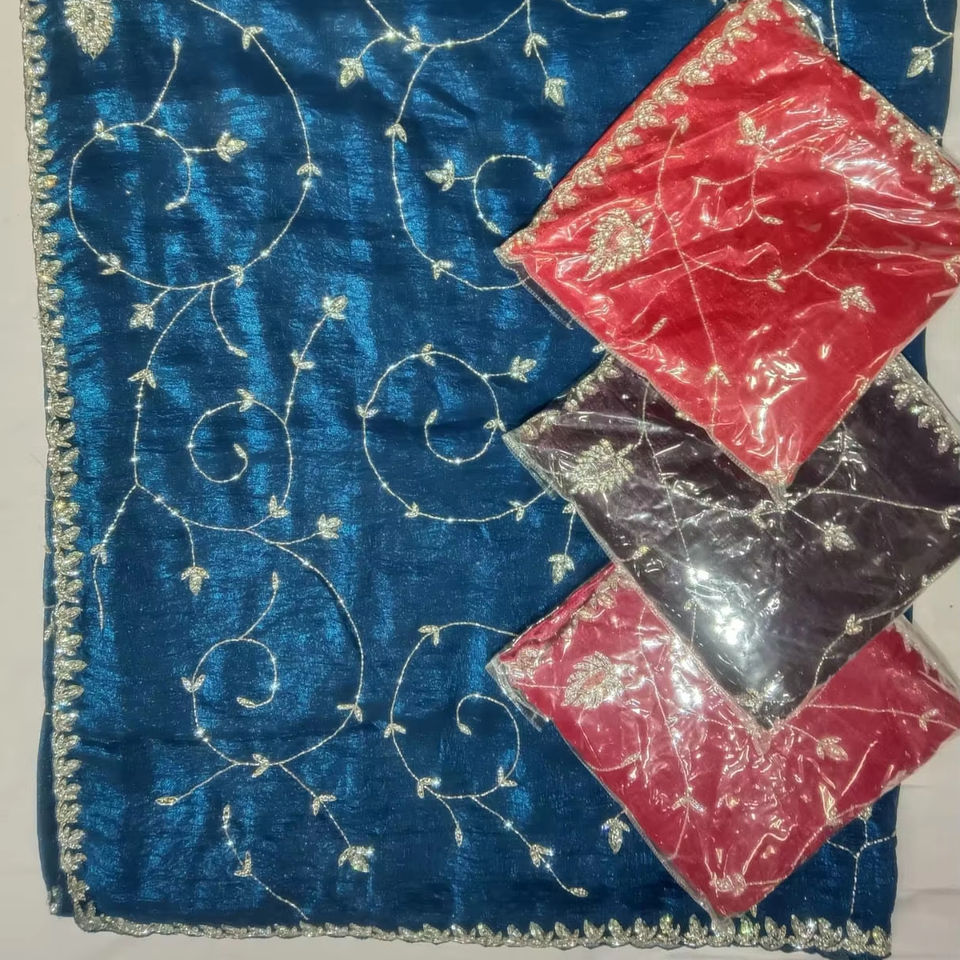 ชุดส่าหรีผ้าไหมออร์แกนซ่าประดับเลื่อมด้วยด้ายสี zari สไตล์อินเดียสำหรับงานแต่งงานและปาร์ตี้
