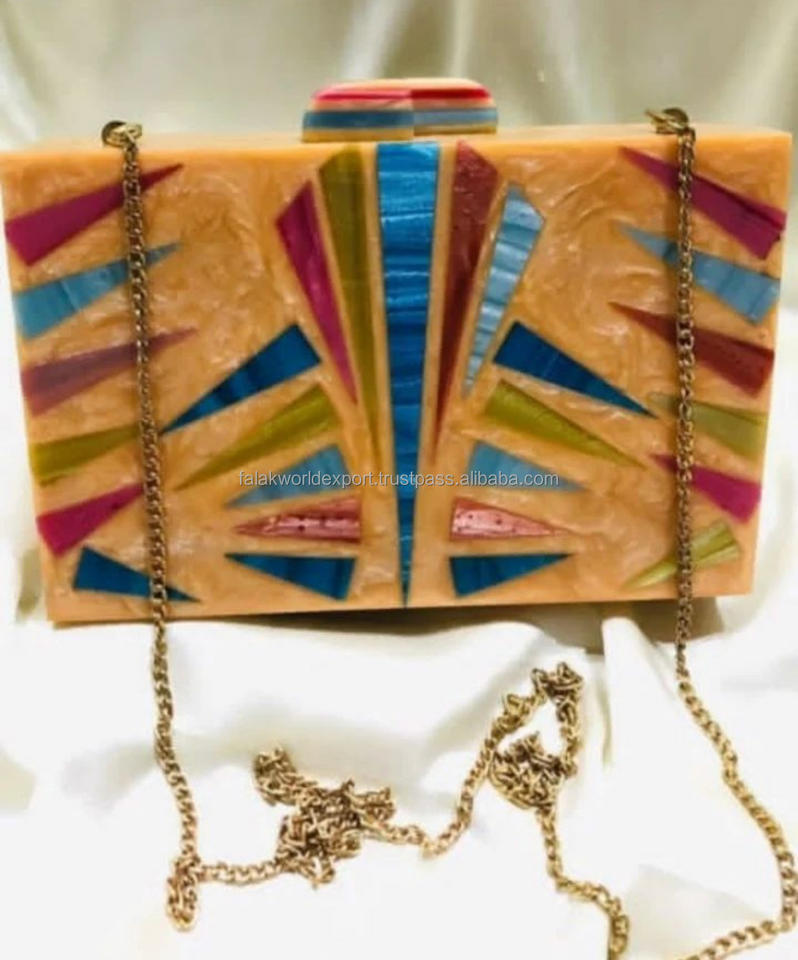 กระเป๋าคลัทช์เรซิ่นแท้สีแดงสีสันสดใสสำหรับสตรีกระเป๋าคลัทช์สำหรับงานแต่งงานเครื่องประดับแฟชั่นของผู้หญิงกระเป๋าถือสีสันสดใสทำมือ