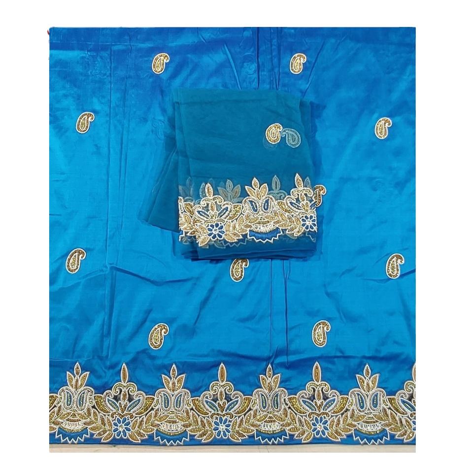 ผ้าไนจีเรียแท้ทำด้วยมือปักด้วยลูกปัดหินสีทองลูกปัดชุดเดรสผ้าคาดผมสไตล์แอฟริกันสำหรับผู้ใหญ่