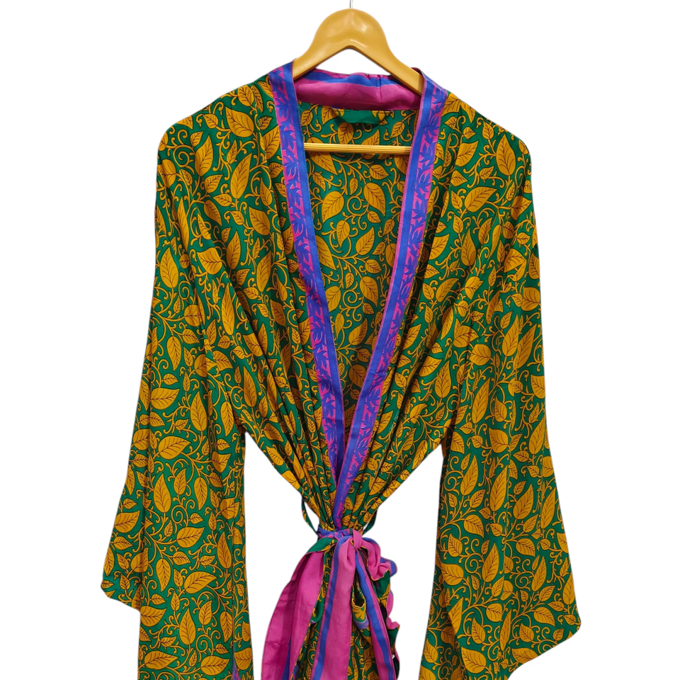 ชุดกิโมโนส่าหรีผ้าไหมแท้น้ำหนักเบาชุดคลุมส่าหรีสไตล์วินเทจชุดปาร์ตี้ชายหาดผ้านุ่มทำมือสไตล์อินเดีย