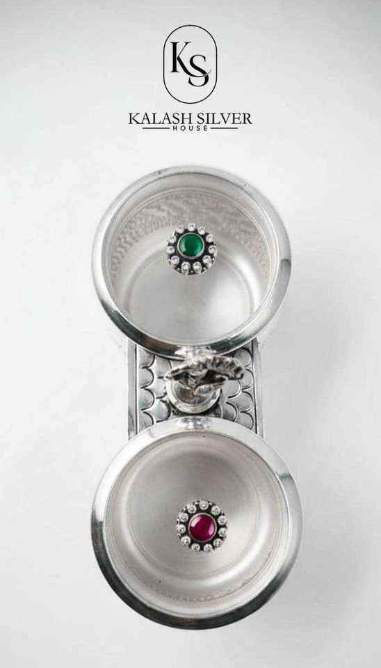 ชุดคุมคุมฮาลดีเงินแท้พร้อมด้ามจับรูปนกยูง ลวดลายดอกไม้แบบดั้งเดิม สำหรับพิธีกรรมในบ้านและวัด