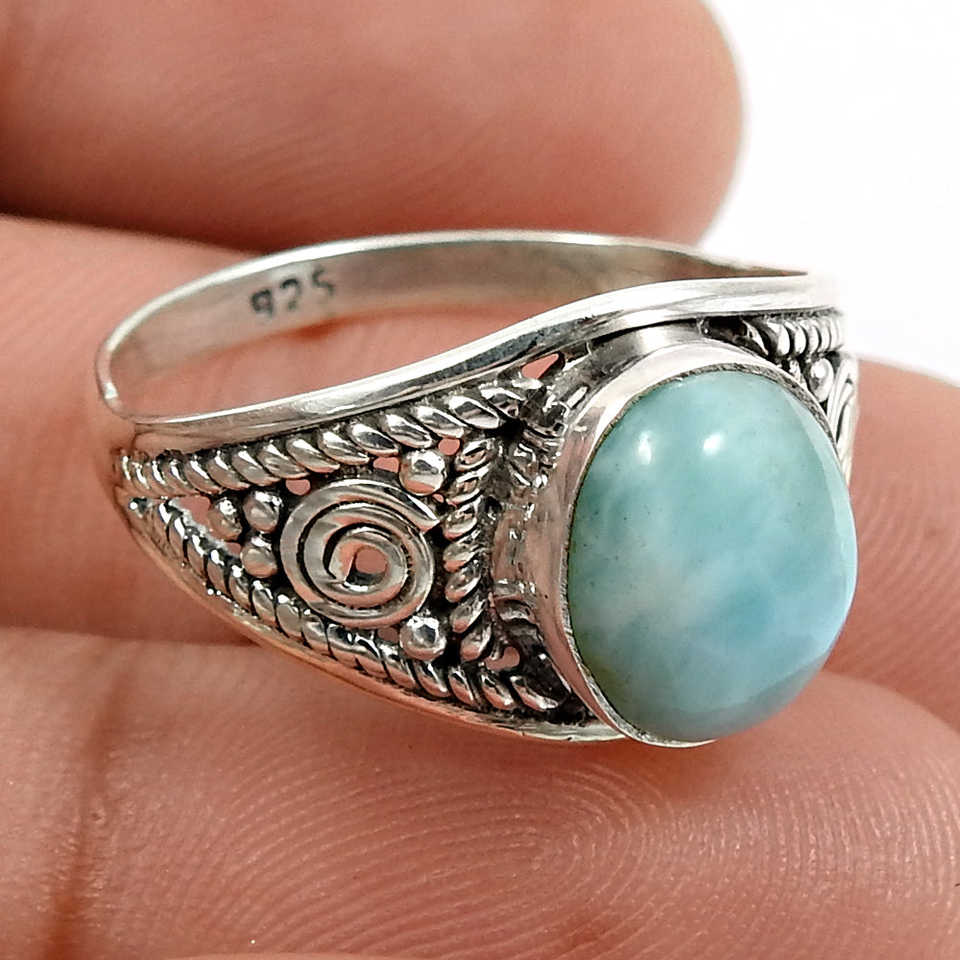 แหวนพลอยลาริมาร์เงินแท้ 925 ขายส่งจำนวนมาก เครื่องประดับดีไซน์โบฮีเมียนล่าสุดสำหรับผู้หญิง