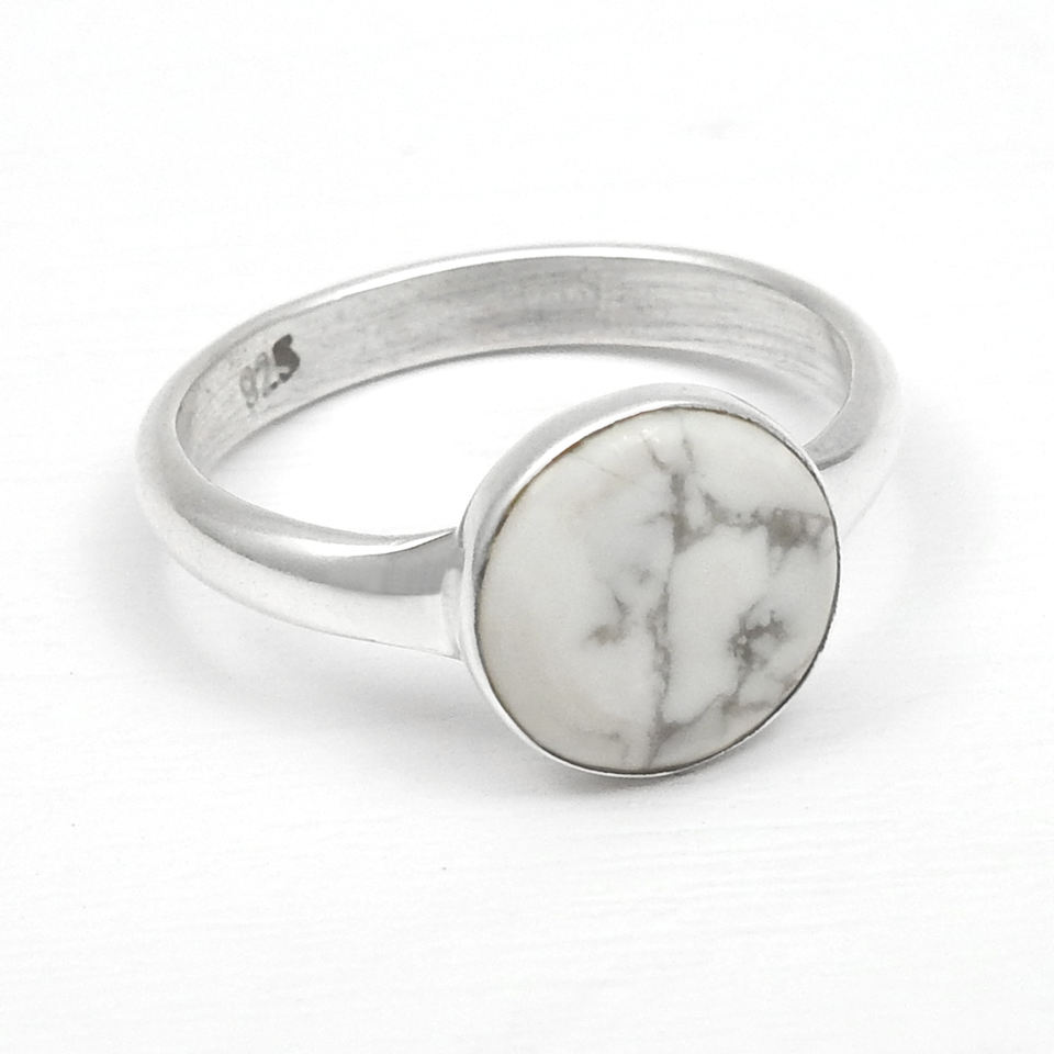 แหวนเงินแท้สีขาวเทอร์ควอยซ์แหวนทรงกลมอัญมณีแท้แหวนวางซ้อนกันได้ทำด้วยมือแฟชั่นสำหรับผู้หญิง